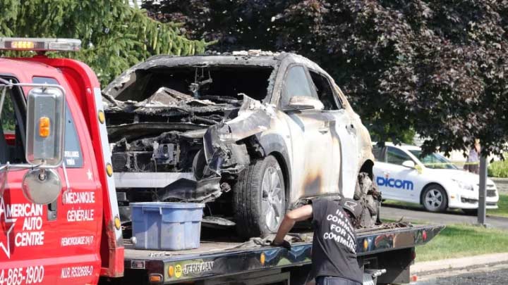 Owner Piero Cosentino told CBC that he had purchased the car in March. After seeing dark clouds of smoke coming from his garage on Friday afternoon, he immediately turned off the breaker. Firefighters were called to the scene at around 1 PM and were able to put out the blaze. No one was injured in the incident. He also tells the reporter that the car was not being charged and wasn’t even plugged in.