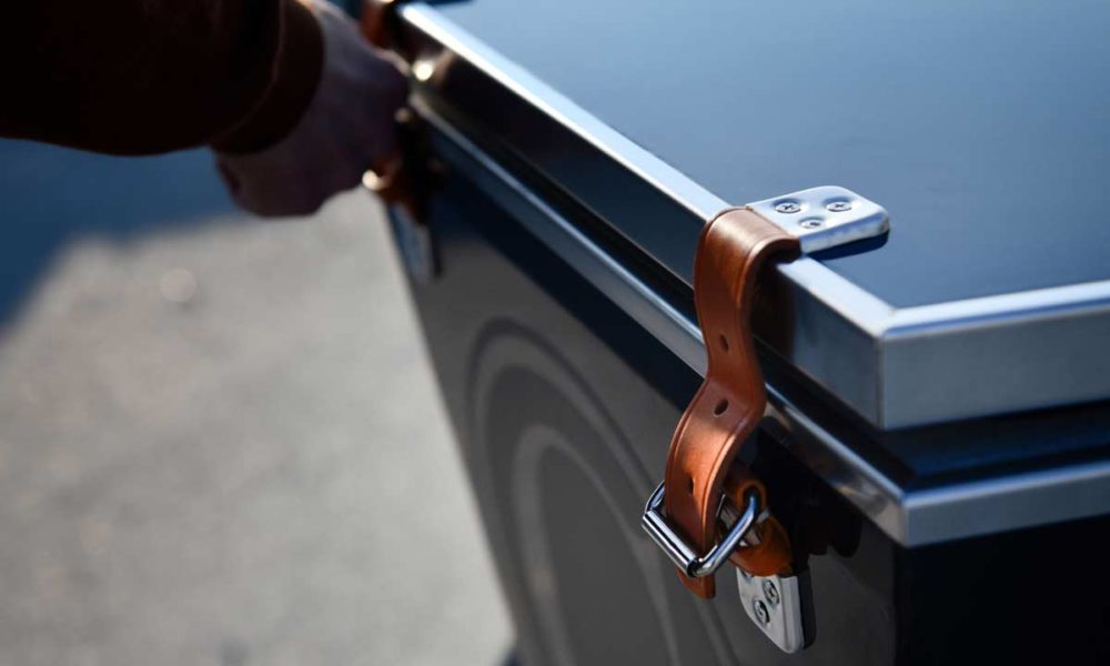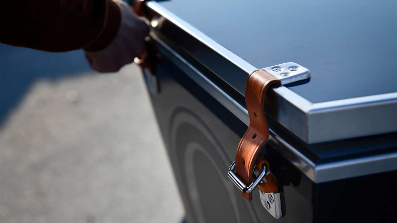 The work surface features three storage compartments. The fridge keeps the day’s drinks and oysters cool, whilst another compartment is for cutlery and preparation accessories. There’s also a bin for storing the empty shells in once the picnic is over.