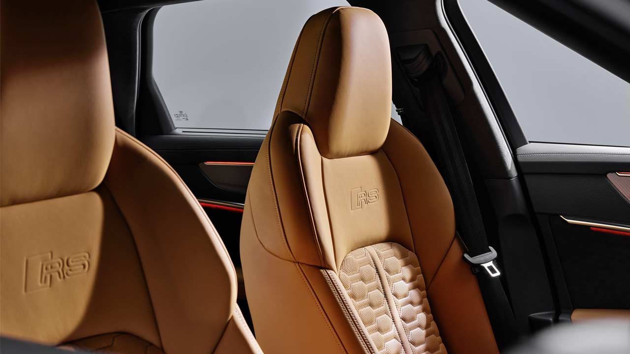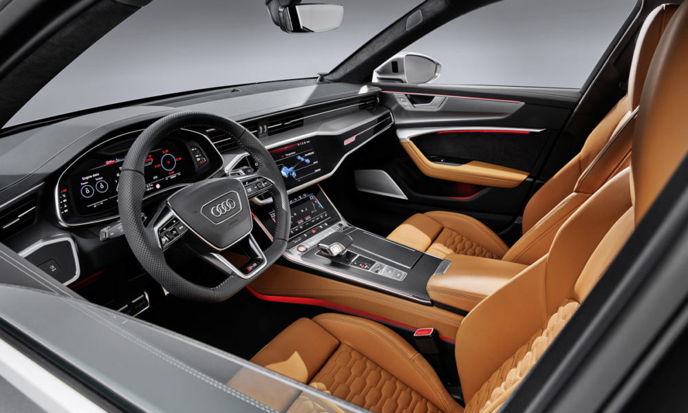 The interior layout looks familiar with two touchscreens where the top one is flush with the black-panel design. Other features include Audi Virtual Cockpit with special RS displays providing information on tire pressure, torque, power output, engine oil temperature, boost pressure, lap times, acceleration measurements and g forces.