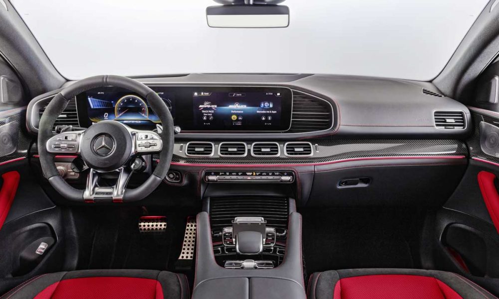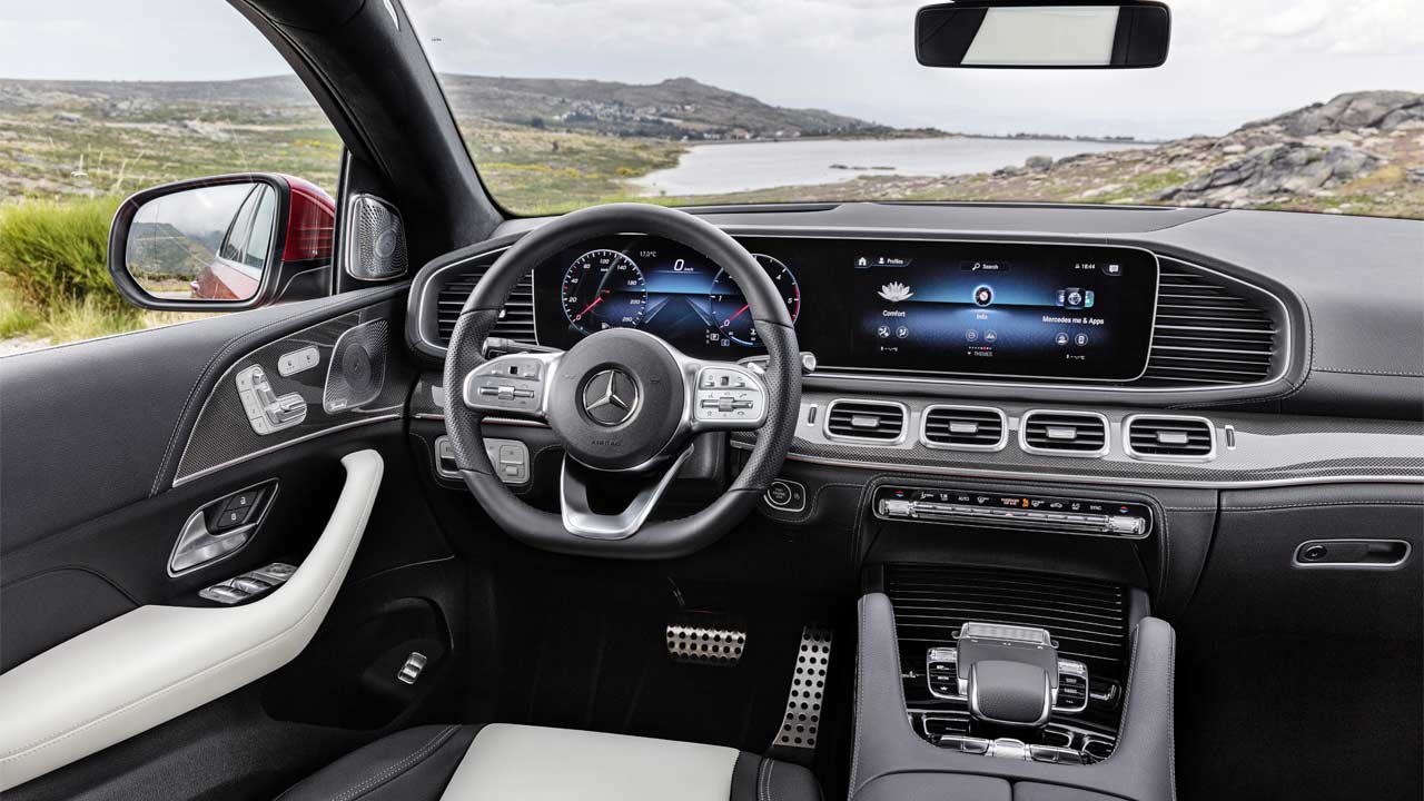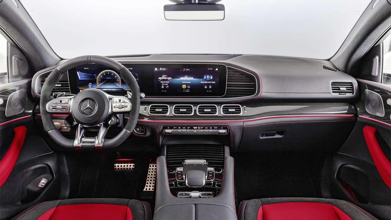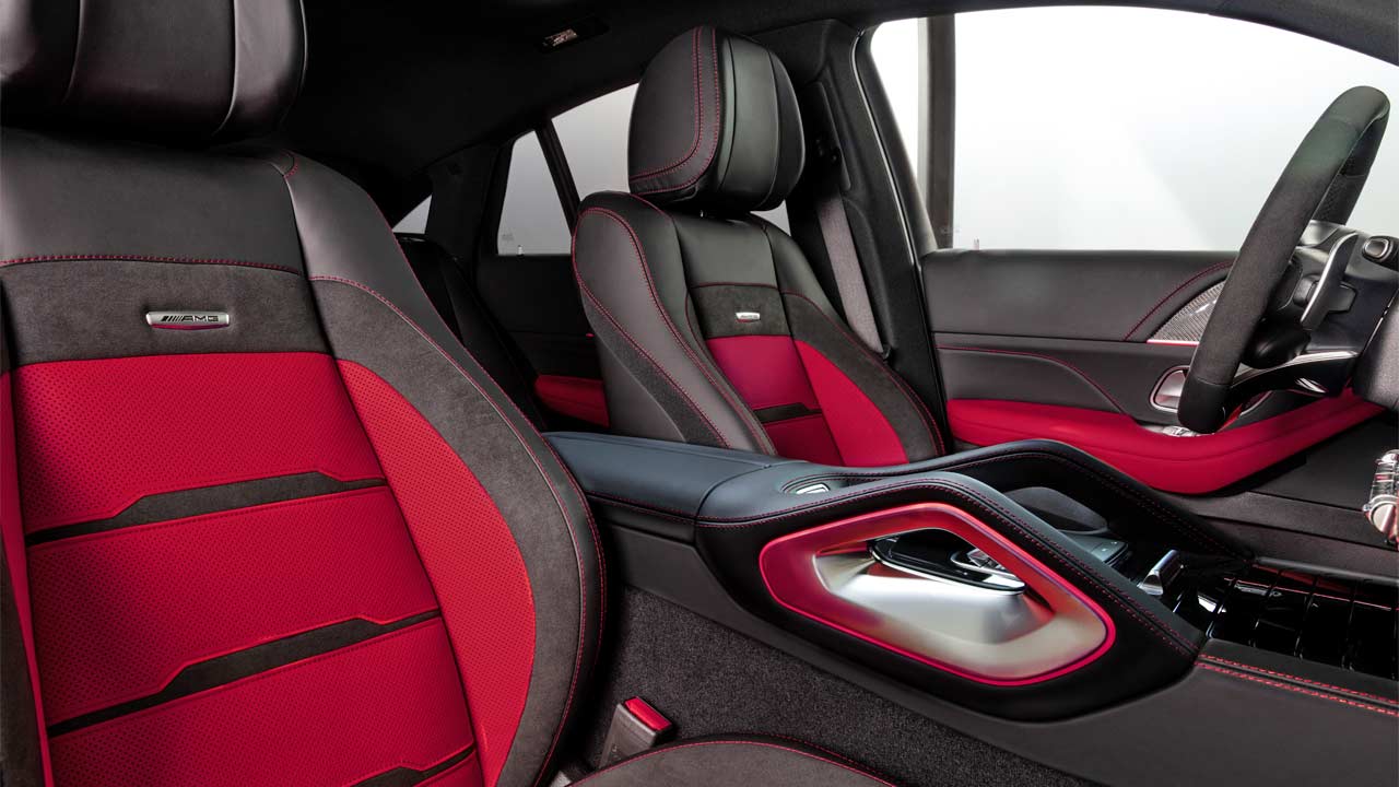 The GLE 53 gets the typical AMG flair with AMG seats, red contrast stitching, 3-spoke AMG steering wheel with aluminium shift paddles, AMG brushed stainless steel sports pedals, and trim elements in carbon fibre.