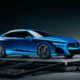 The chiseled looks continue on the side profile with a sharp character line connecting the front wheel arch and the taillamp. Intersecting lines create an impression that every surface is changing shape as it flows front to rear. At the rear, there’s an upswept decklid with a sharply creased centerline (drawn from the hood) and an integrated forged carbon spoiler. Chicane LED taillights, a large diffuser and quad chrome exhaust tips complete the look.