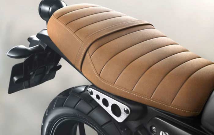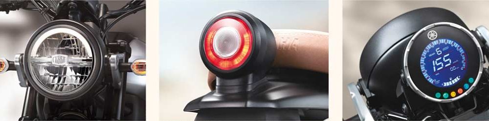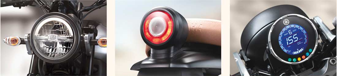 Features include LED headlight, LED taillight, full LCD digital instrument cluster, Heritage seat, disc brakes at both ends, and 17-inch wheels shod with dual-purpose tyres measuring 110/70 at front and 140/70 at the rear. Suspension duties are handled by an inverted telescopic fork at the front and a monoshock at the rear. Download Yamaha XSR155 brochure here.