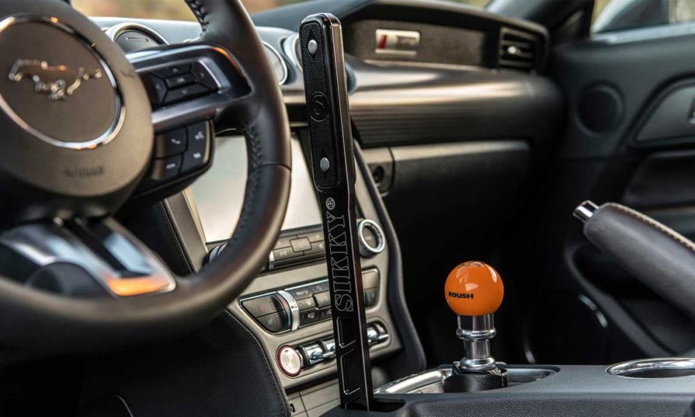 The Mustang is also equipped with the optional Roush Active Exhaust System, which offers four different user-selectable exhaust modes. Other upgrades include a custom Sikky handbrake designed for drifting.