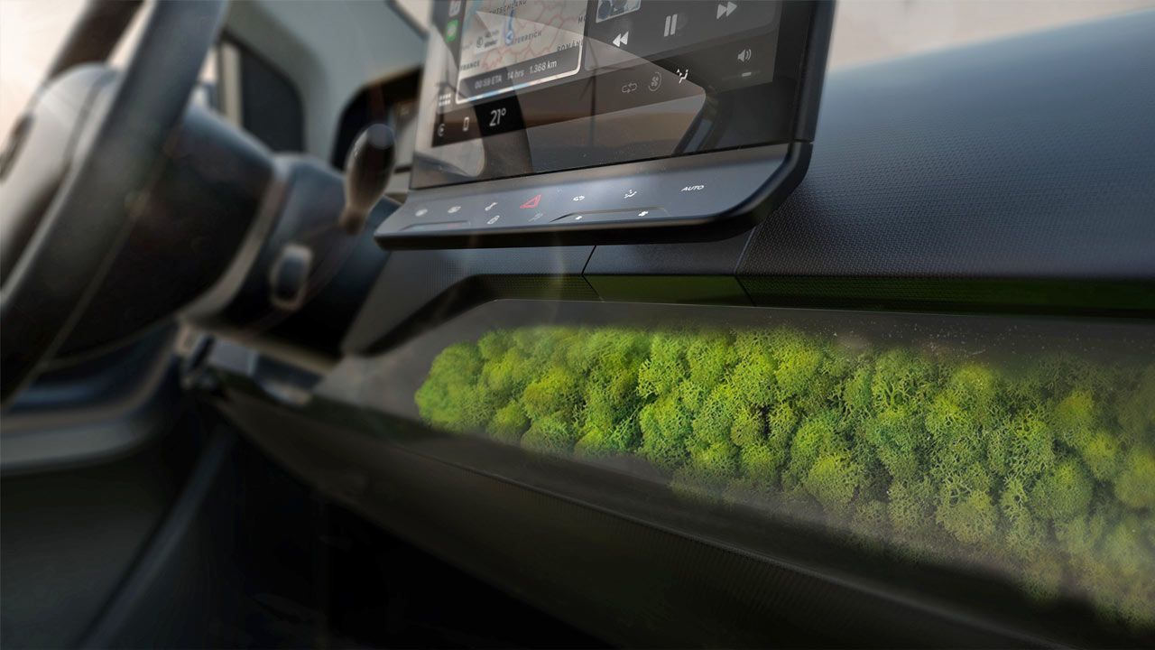As shown in the prototype, the dashboard features a panel with moss plants, dubbed as breSono air filter system. It is claimed to improve the interior climate and reduce particulate pollution.