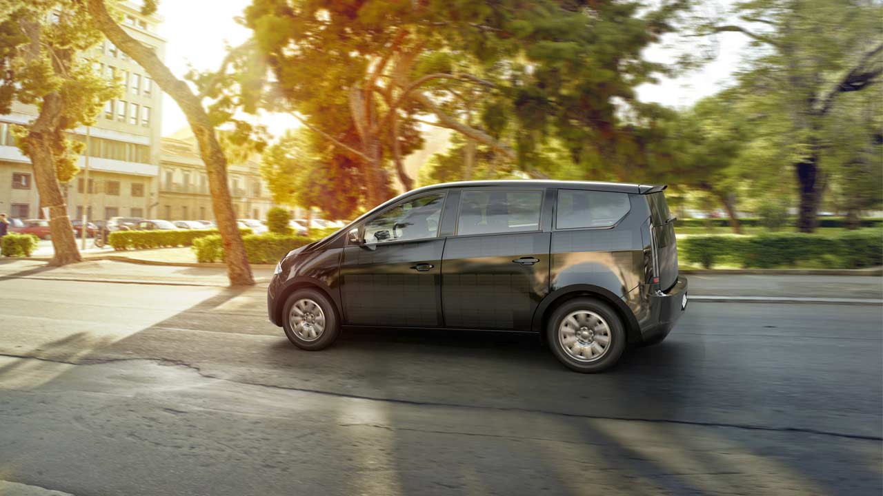 The hood, fenders, sides, roof, and rear of the vehicle carry solar cells that are flush with the bodywork. The system is protected by a scratch-resistant polymer. Sion says that the monocrystalline silicon cells can produce energy even under cloudy skies or in the shade. At peak performance, the integrated cells can generate up to 1.2 kW.