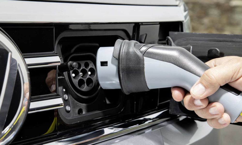 To charge the battery while driving, the driver has to activate Hybrid mode in the infotainment system; a battery divided-up into 10 segments then appears on the touchscreen. The driver can use this display to select how much of the battery’s capacity should be reserved for pure electric driving.