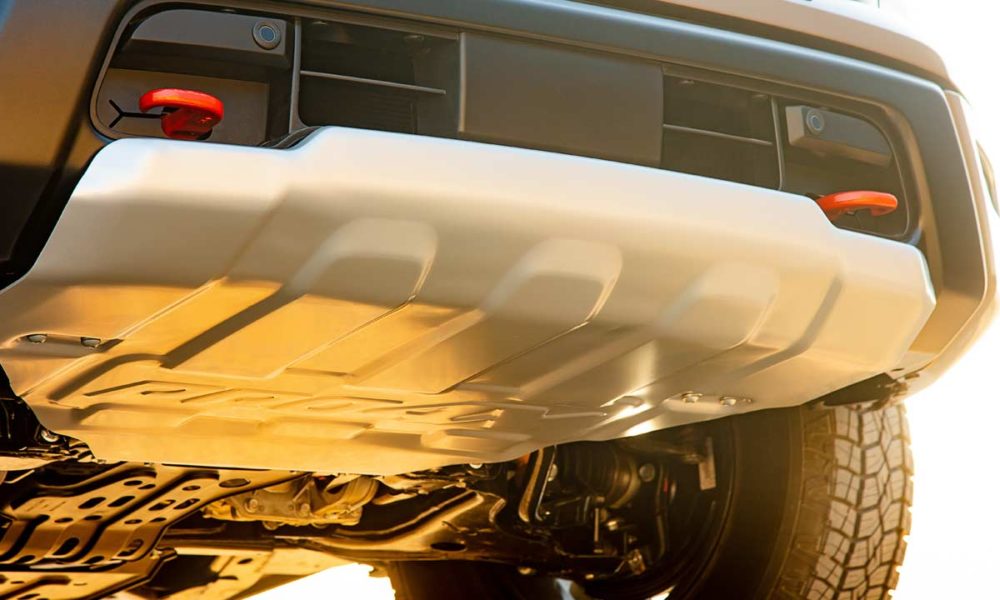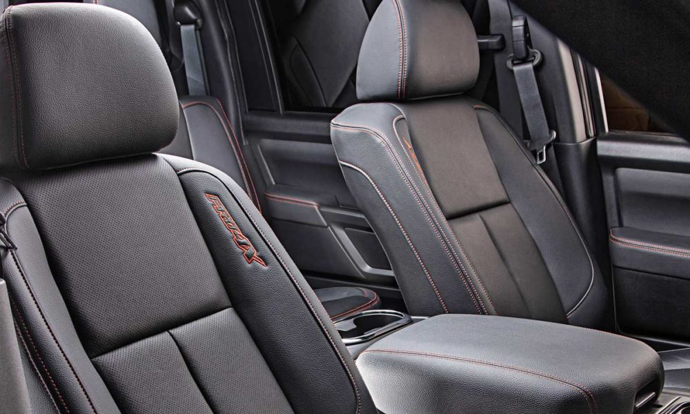 New all-LED lighting has been added to the pickup bed, using four light sources for full surround lighting. The rear exterior design includes new LED lights and tailgate finishers. PRO-4X features a black finisher, while Platinum Reserve utilizes a Satin Chrome finisher. Buyers can go for LED fog lamps.