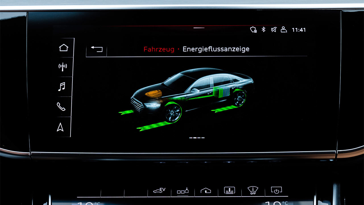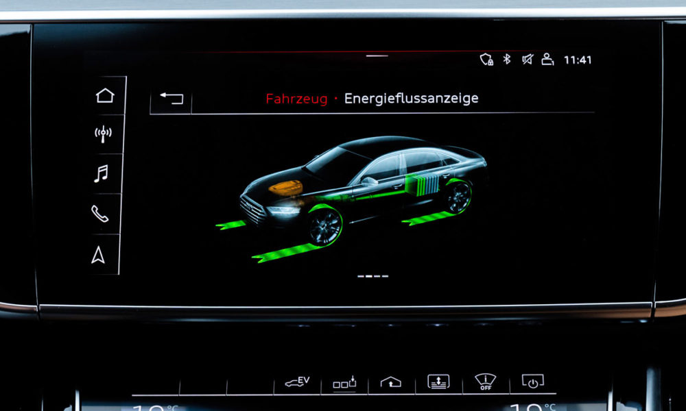 The car gets the EV soft key between the two MMI displays. The Audi flagship is claimed to recover up to 25 kW of power through coasting recuperation. The electric motor also performs all light and medium brake operations up to 0.3 g, which make up more than 90% of all brake operations in everyday driving. It works together with the hydraulic wheel brakes. Thanks to a sophisticated fine-tuning, the transition, also known as “blending”, between the electric and hydraulic brakes is virtually imperceptible, Audi said.
