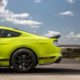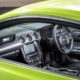 Based on the Mustang GT Fastback, the R-SPEC is limited to 500 units. This particular example is finished in Grabber Lime paint, while the Twister Orange, Oxford White, and Velocity Blue finishes are available too. Visual and aerodynamic enhancements include black Pony badge, black curtains for the air intakes on the bumper, black over-the-top stripes, black hood vents, black mirror caps, R-SPEC projection puddle lamps, black 5.0 badge, black hockey stripes on the side, black rear spoiler, and black R-SPEC badge.