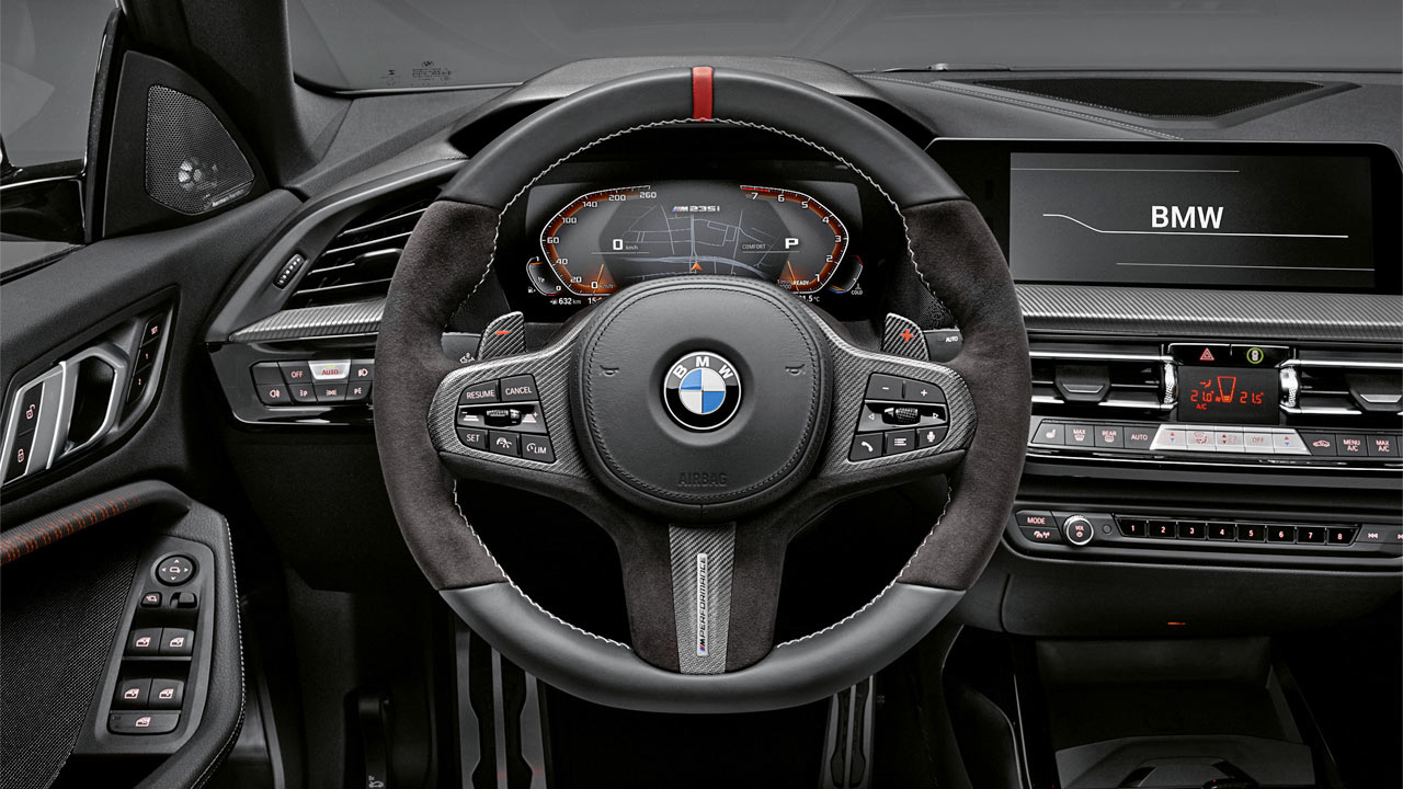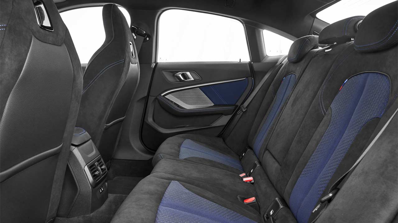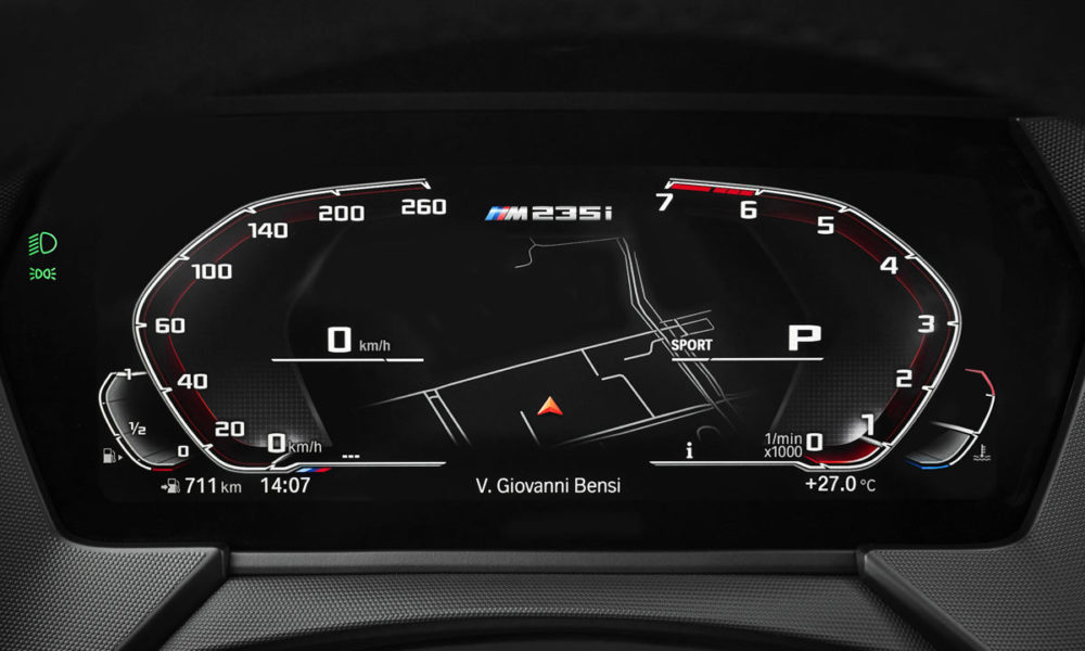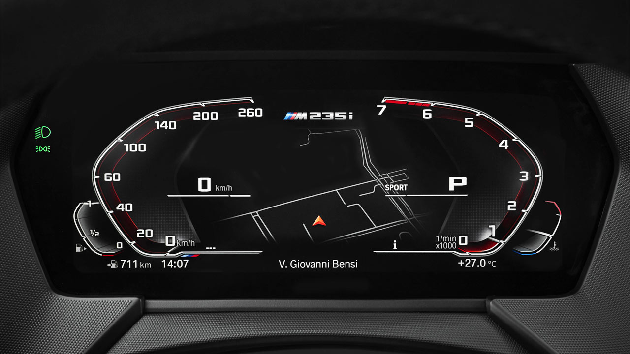 As with other latest BMW models, the driver-focused interior layout looks familiar with features including BMW Live Cockpit Professional, which comprises of a 10.25-inch instrument display and a 10.25-inch infotainment system. Standard features of the M Sport model and the M235i xDrive include the M Sport steering wheel and Trigon/Sensatec sports seats in Black or a variant with special M piping and contrast blue stitching.