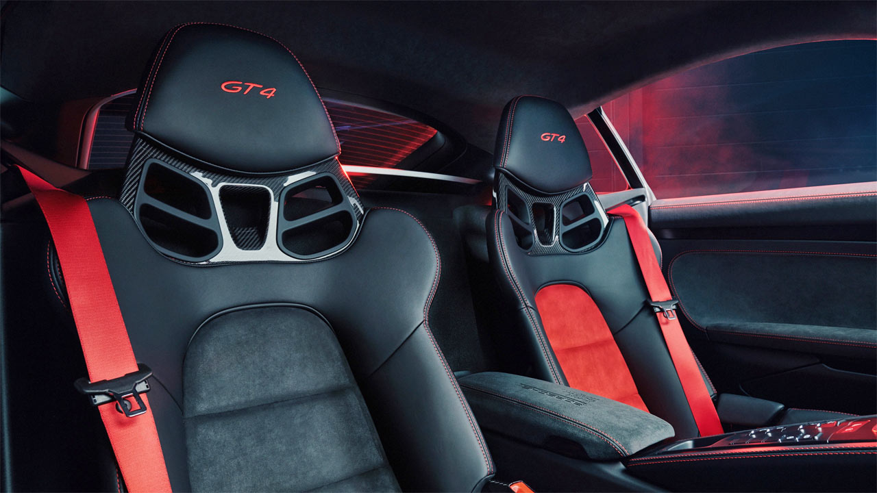 Interiors are equally special too with Black leather and Alcantara upholstery, and red contrasts throughout the cabin. In addition to the contrast stitching, the seat belts and door opener loops are also in Guards Red. Notice the red Alcantara on the driver’s seat to distinguish from the passenger seat.