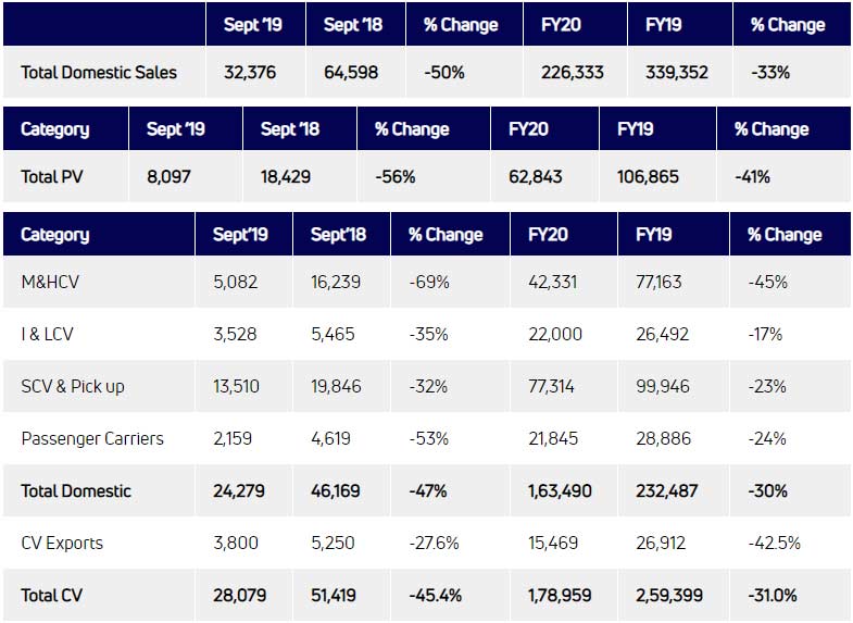 With a total of 28,079 units in September 2019, a decline of 45.4 percent, the Commercial Vehicle segment didn’t do well either.