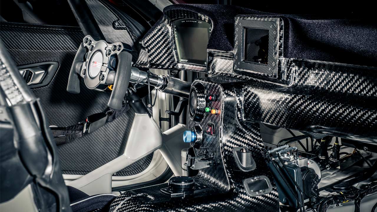 Interiors get a high-strength roll cage and FIA-standard OMP racing seat with 6-point harness. Other standard features include an 8-inch driver display, Datalogger, Motorsport ABS, Traction Control, air jack system, and a fire extinguisher. Options include a rearview camera, Tire Pressure Monitoring System, suspension travel sensors, drinking system, illuminated car number, and an endurance package.