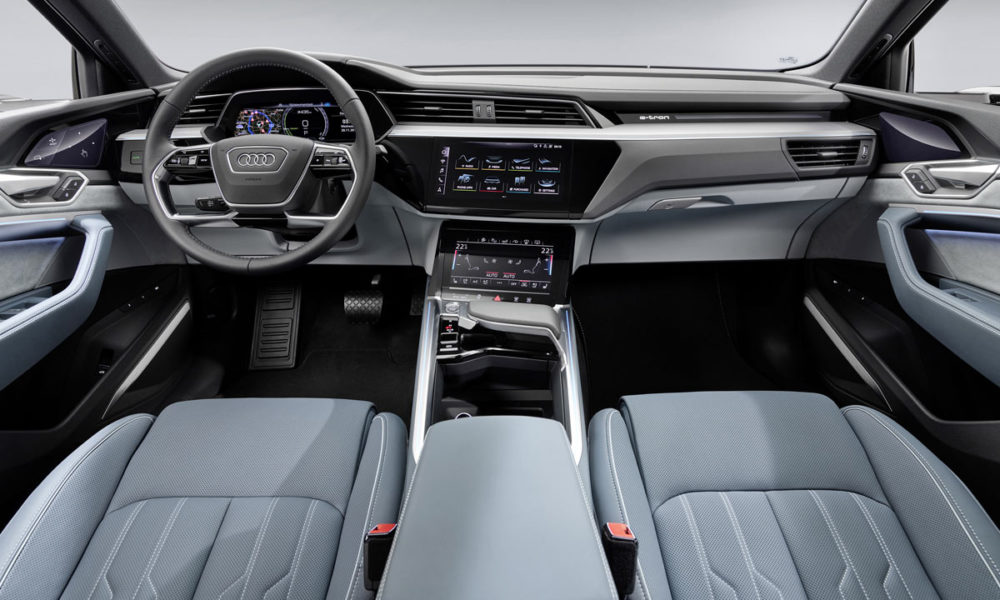 When it goes on sale in the European market in spring 2020, the e-tron Sportback will be available in a limited edition model called ‘Edition One’. Finished in the plasma blue color and based on the S line exterior, it also includes the virtual exterior mirrors, aluminum accents, exclusive 21-inch wheels, orange brake calipers, panoramic glass sunroof, matrix LED headlights with front & rear dynamic turn signals as well as dynamic light scenarios, illuminated front door sills with logo projection, and Bang & Olufsen Premium Sound System with front 3D sound.
