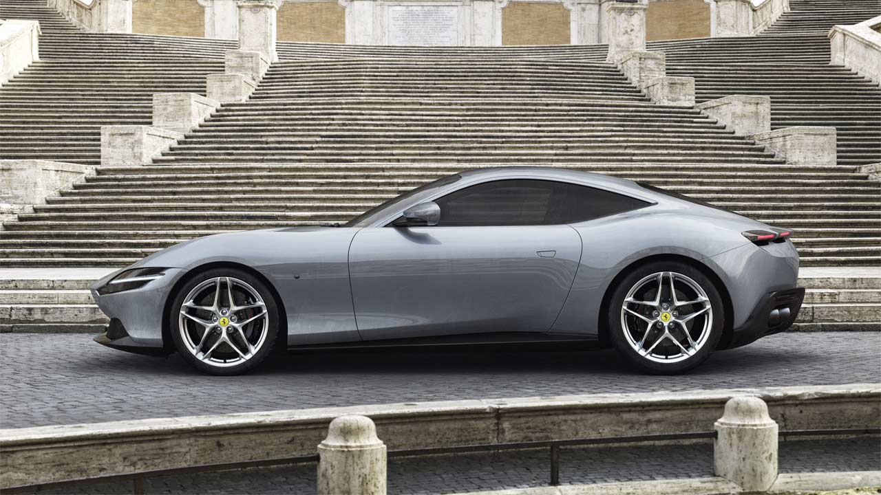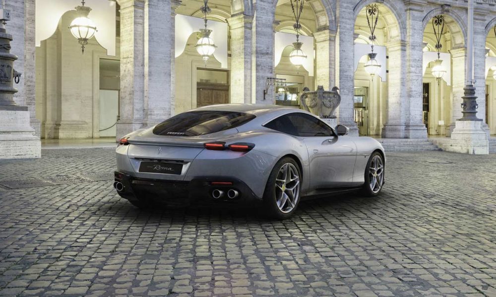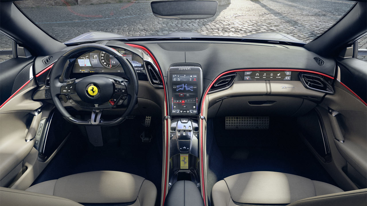 Powering the Roma is a 3.8-litre (3,855 cc) twin-turbo V8 that puts out 620 metric hp (456 kW) between 5,750–7,500 rpm and 760 Nm (560 lb-ft) of torque between 3,000–5,750 rpm. Those output figures are with 98 octane petrol. An 8-speed DCT sends power to the rear wheels. A 0-100 km/h (62 mph) acceleration is claimed to happen in 3.4 seconds and the top speed is over 320 km/h (199 mph). With lightweight options, the car weighs 1,472 kg (3,245 lbs) dry.