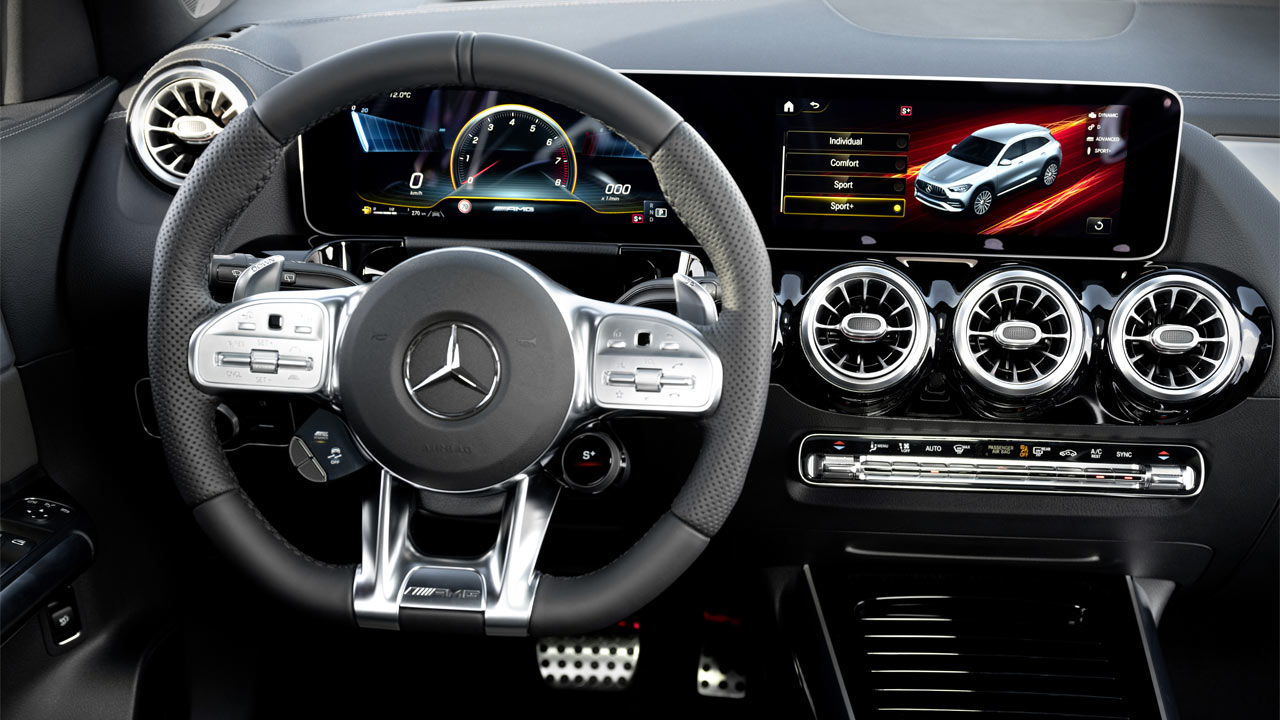 The AMG model gets AMG-specific display graphics, AMG steering wheel with optional steering wheel buttons, brushed stainless steel sports pedals, and AMG suspension that is tuned for high cornering speeds with a low tendency to roll. Buyers can opt for the AMG Ride Control adaptive damping system that enables the driver to choose between three different suspension control modes.