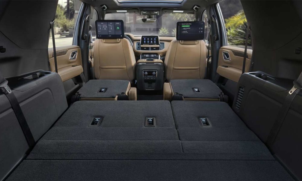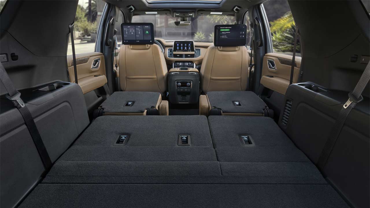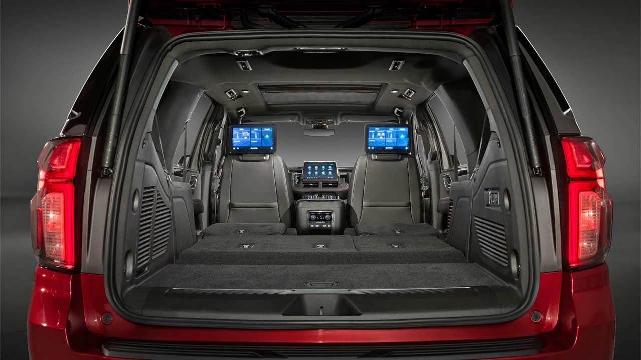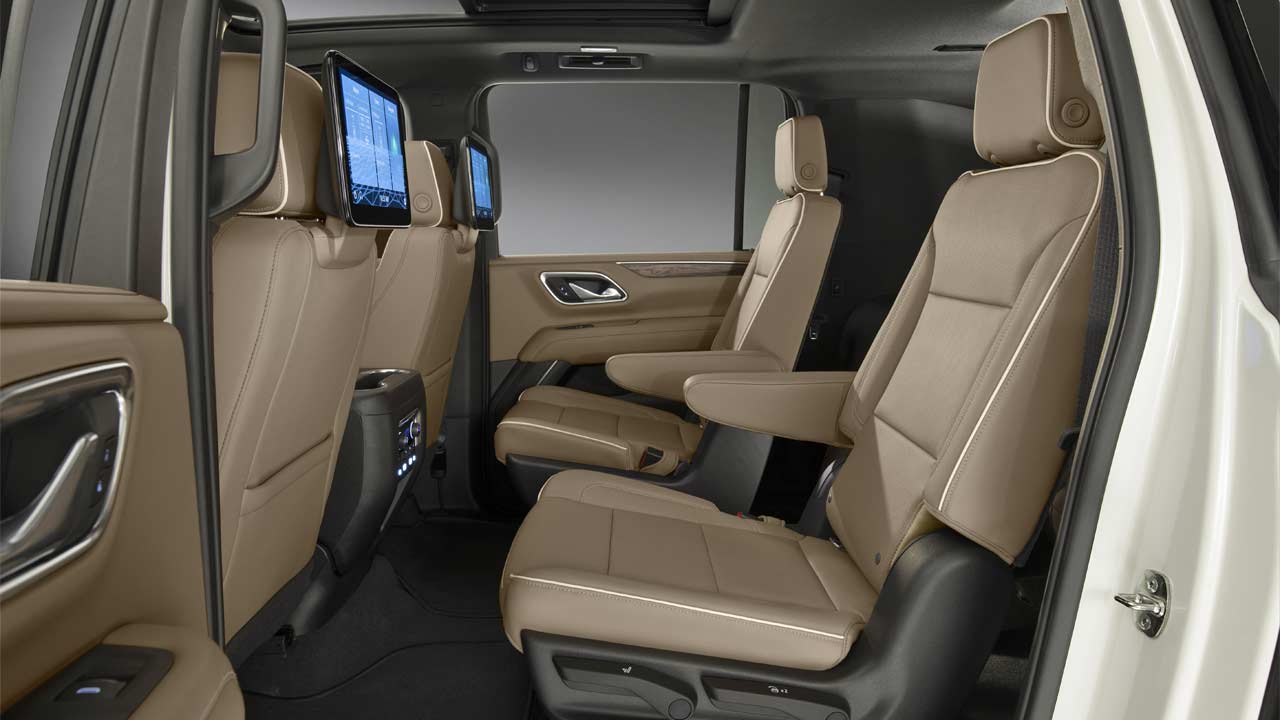 Buyers can opt for dual 12.6-inch rear-seat LCD displays. In the 2021 Tahoe, the second and third row legroom is up by 3 inches and 10.1 inches, respectively. As for the 2021 Suburban, the second and third row legroom is up by 2.3 and 2.2 inches, respectively.