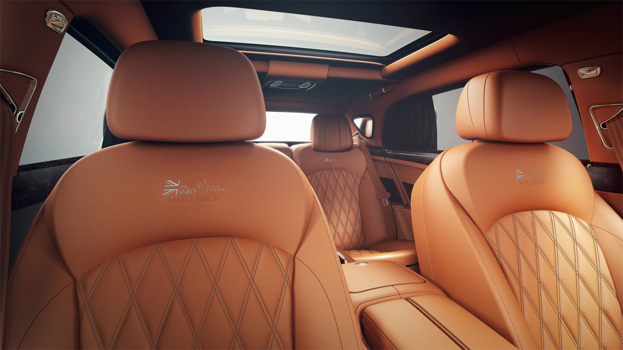 Interiors get the finest handcrafted veneers, metals, and leathers – all with bespoke Mulliner artistry. An expressive interpretation of a modern day London skyline is embroidered into all four seats, and is also replicated on the dashboard veneer. Buyers can choose from 3 different interior colour combinations – Newmarket Tan with Burnt Oak, Fireglow with Imperial Blue, or Shortbread with Redwood.