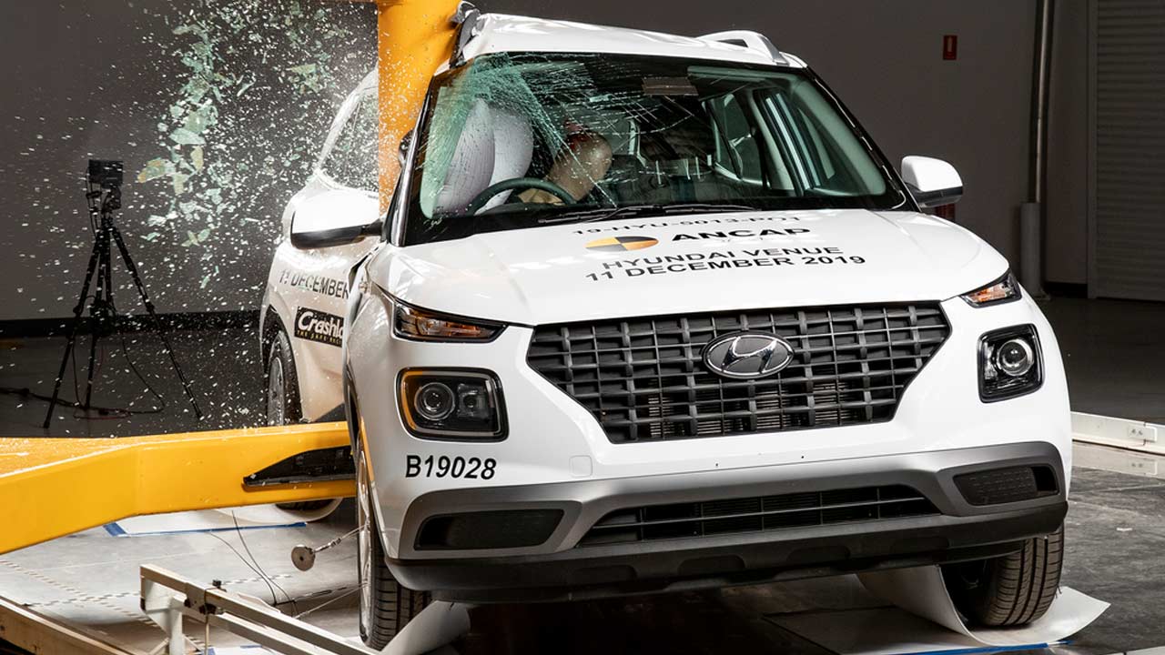 The Venue was subjected to frontal offset (64 km/h), full width (50 km/h), side impact (50 km/h), and oblique pole (32 km/h) tests.