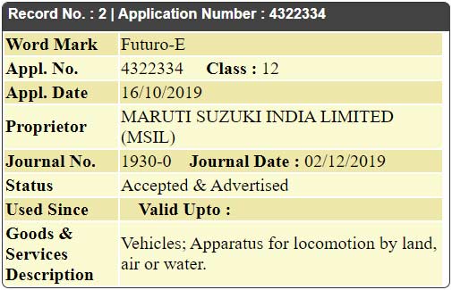 As we all know, Maruti Suzuki (MSIL) commenced working on electric vehicles in October 2018 with prototypes based on Wagon R vehicles. The company seems to be having more EV plans for the market as a new trademark called ‘Futuro-E’ has been filed recently.