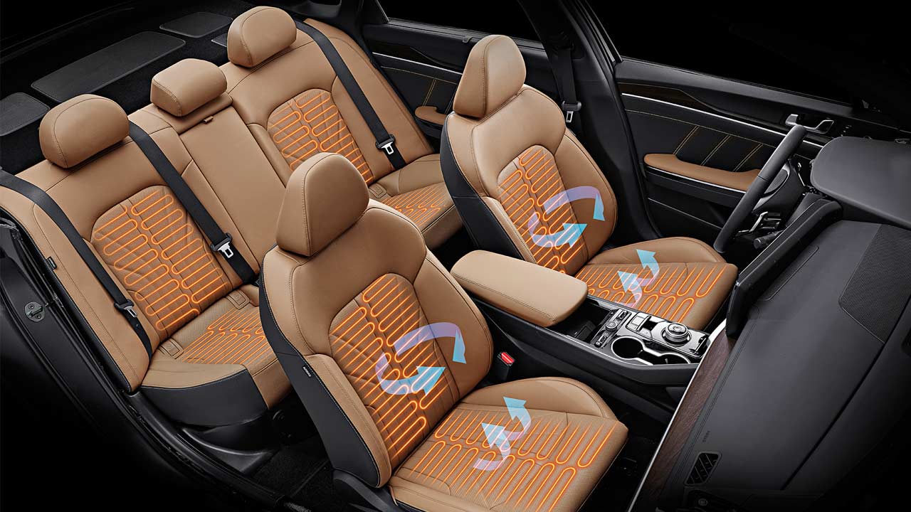 All engines are paired as standard with 6- or 8-speed automatic transmissions, while the 2.5-litre T-GDi engines are also available with a new 8-speed wet double-clutch transmission (8DCT). The new K5 also offers a Drive Mode Select system with ‘Smart’, ‘Comfort’, ‘Eco’, ‘Sport’ and ‘Custom’ modes.
