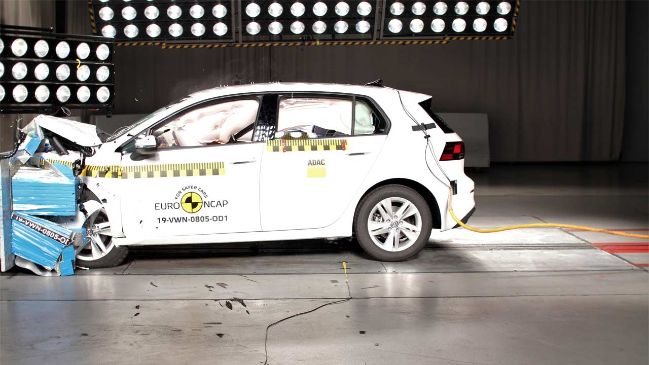 The new Golf was subjected to frontal offset impact, frontal full width impact, side crash, and pole crash tests.