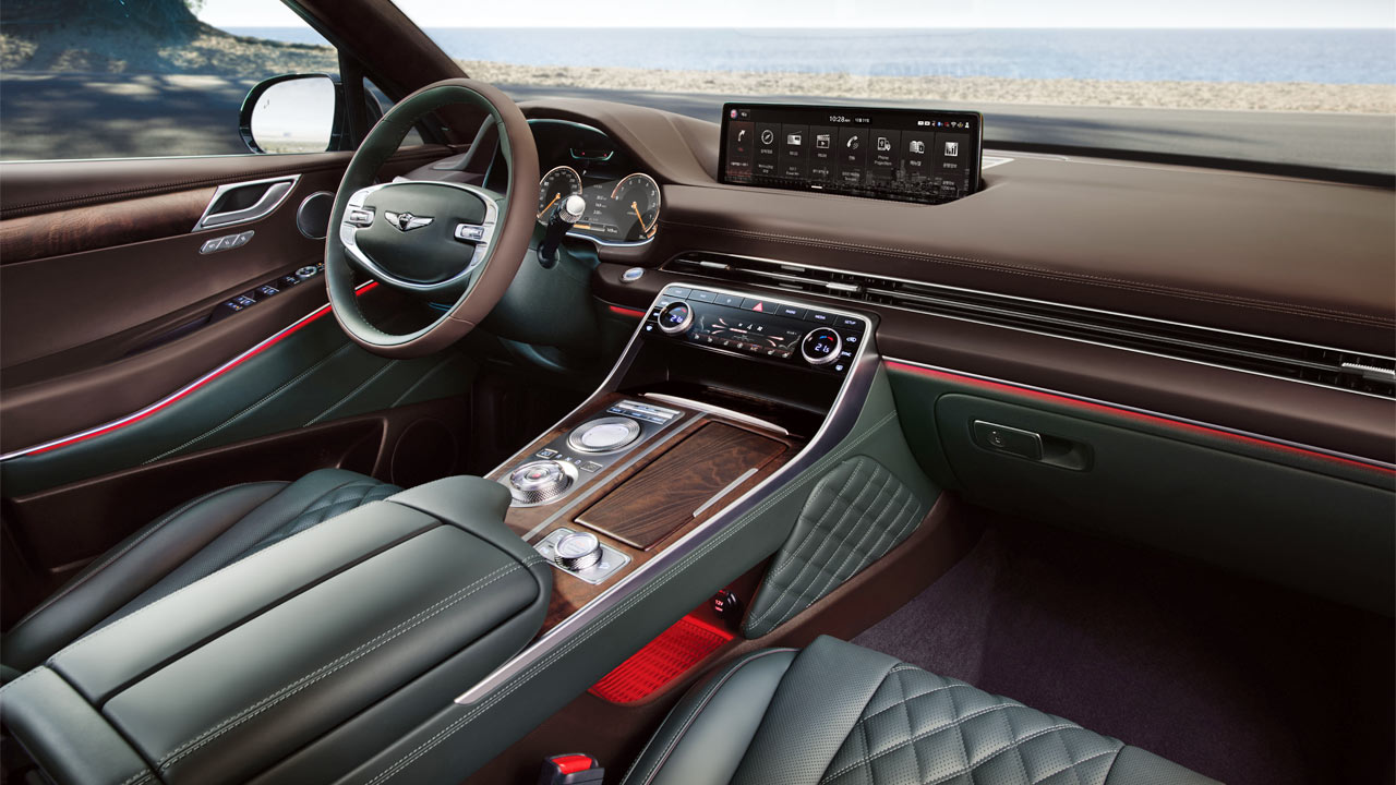 The GV80 boasts a number of standard active and passive safety systems. These include advanced driver-assistance systems (ADAS) systems such as Smart Cruise Control with Machine Learning (SCC-ML), Highway Driving Assist II, Forward Collision-Avoidance Assist, Blind-Spot Collision Avoidance Assist, Rear Cross-traffic Collision-Avoidance Assist, and Driver Attention Alert Warning. As for passive safety, the GV80 gets a total of 10 airbags including a center-mounted airbag between the front occupants to mitigate the interior impact.