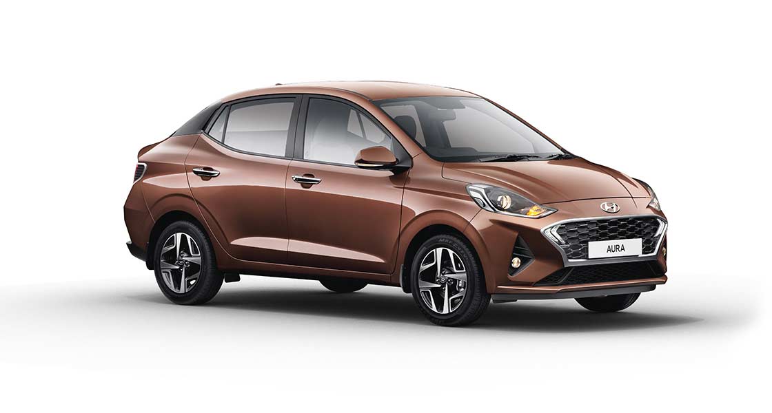 Safety features include dual front airbags, ABS with EBD, driver & passenger seat belt pretensioners & load limiters, rear camera, and front projector fog lamps. Download the Aura brochure here.