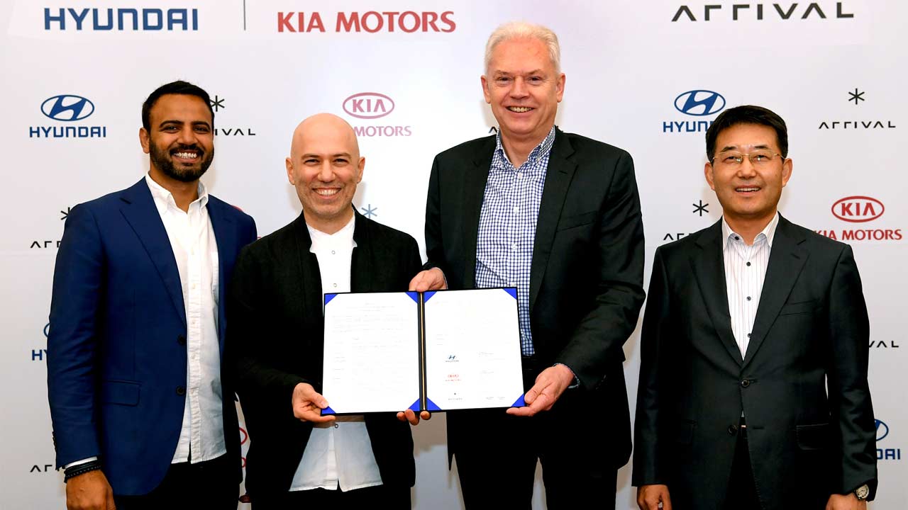 L-R: Avinash Rugoobur (CSO, Arrival), Denis Sverdlov (CEO, Arrival), Albert Biermann (President, Hyundai R&D), Edward Lee (EVP, Hyundai CV Business)