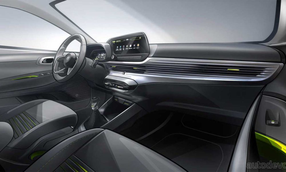 The interior sketch above gives us an idea of the new i20’s layout. Features or options would include a 10.25-inch digital instrument cluster, a 10.25-inch touchscreen infotainment system, Android Auto & Apple CarPlay connectivity, wireless smartphone charging, and Hyundai SmartSense safety features.