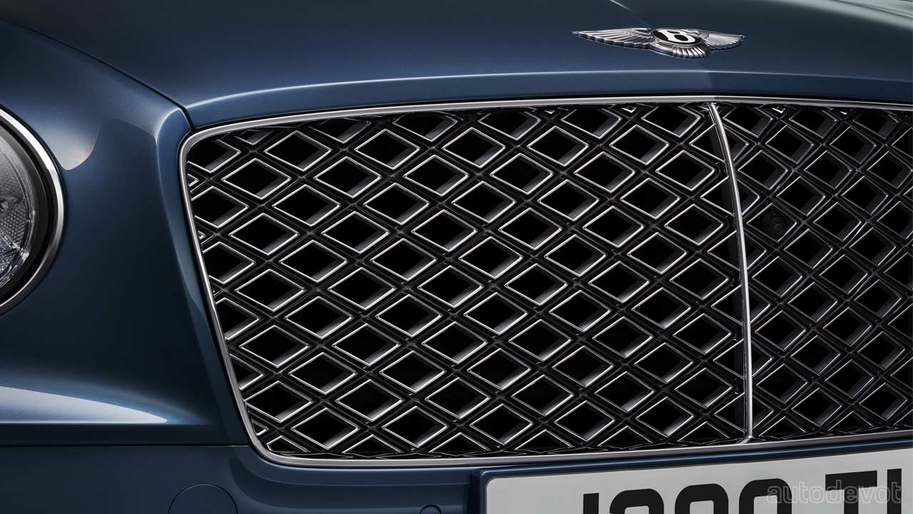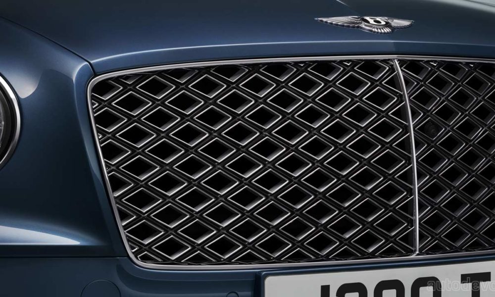 To begin with, there’s a new ‘Double Diamond’ front grille which is further complemented by bespoke Mulliner-branded side vents that continue the silver on black diamond theme. The inspiration for the new Double Diamond design comes from Bentley’s Diamond-in-Diamond interior quilting concept, which adorns all four seats, the door casings, rear quarters and now for the first time, the tonneau cover too.