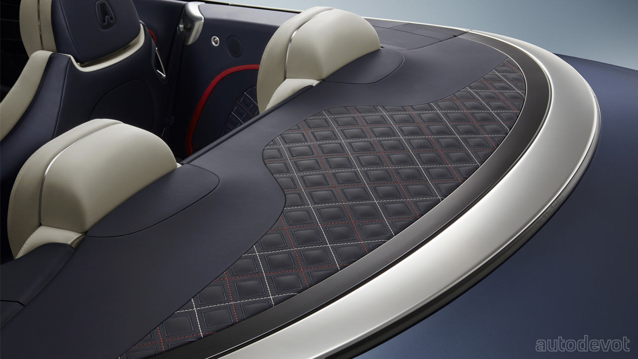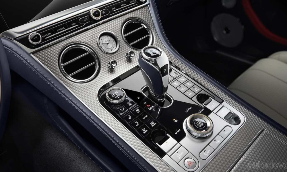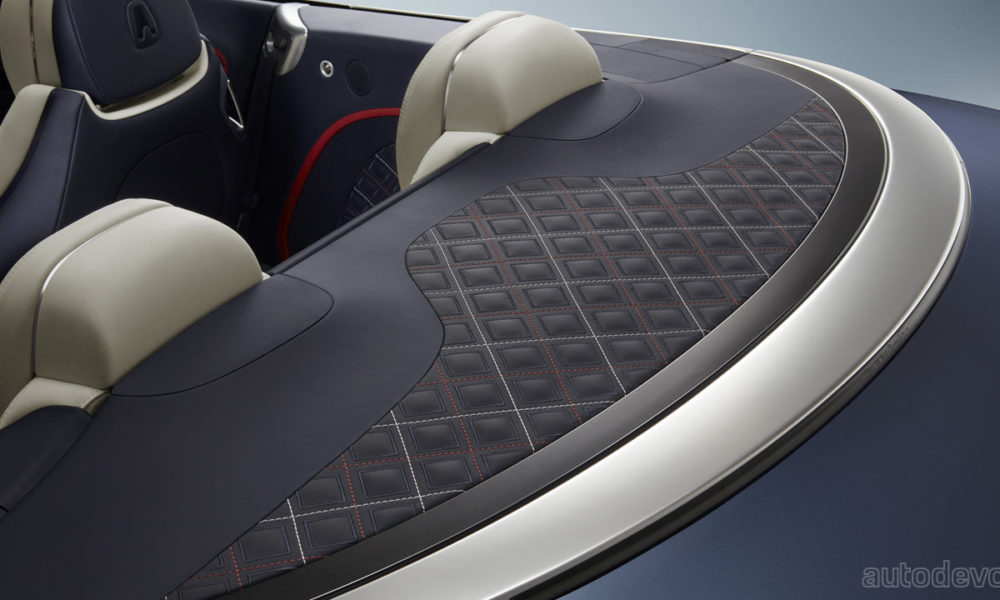 The Diamond-in-Diamond interior quilting includes contrast stitching in two complementary colors. It apparently takes almost 400,000 stitches to deliver this quilting across the cabin of the car, with each diamond containing exactly 712 individual stitches – each one precisely aligned to point to the centre of the diamond it creates.