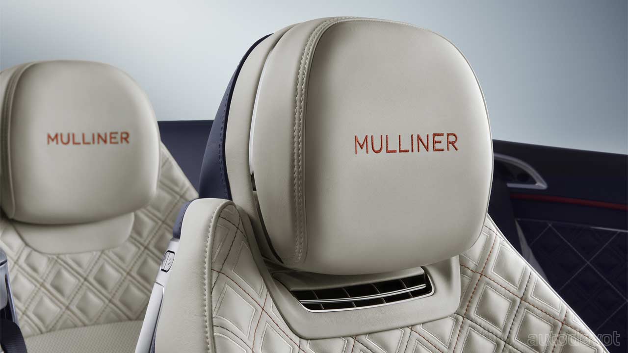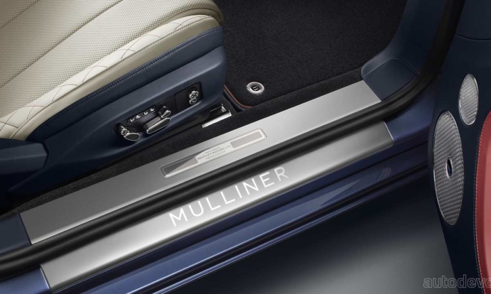 The car also features mood lighting comprising of 7 different themes, illuminated Mulliner tread plates, LED welcome lamps that project the Bentley wings onto the ground from the door mirrors, and 2,200-watt Naim audio system.