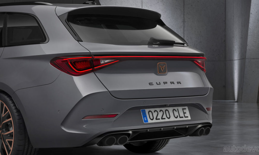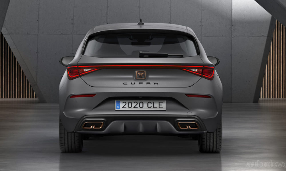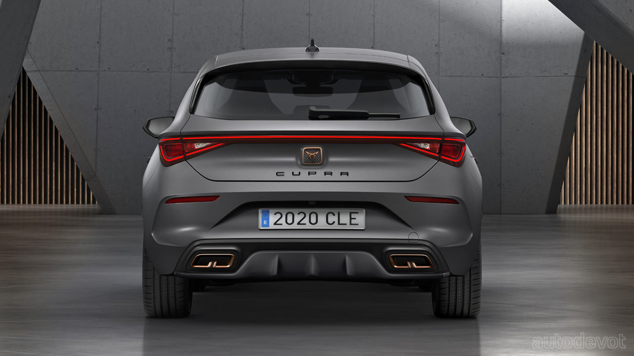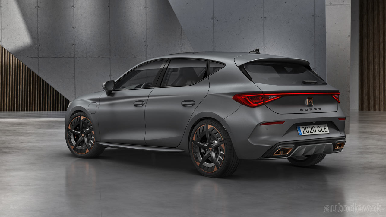 The styling changes are pretty obvious and understandable. New grille patterns, black inserts, Cupra-specific 19-inch wheels, copper-colored Brembo brakes, a rear spoiler, a diffuser insert flanked by Copper-ish dual exhaust tips, all complement really well with the Graphene Grey finish on this example. The wing mirrors project Cupra logo onto the ground as the vehicle gets unlocked.