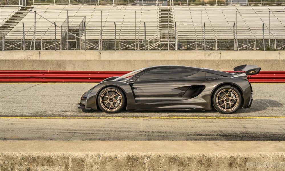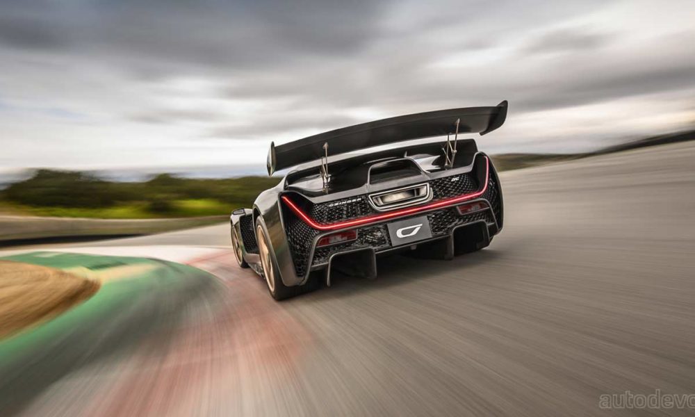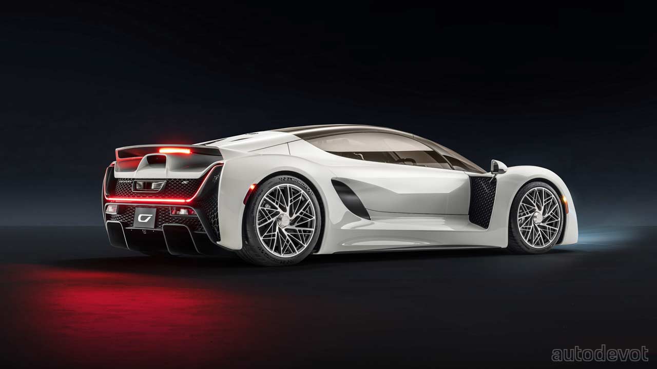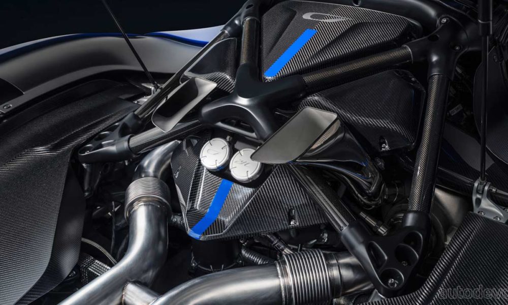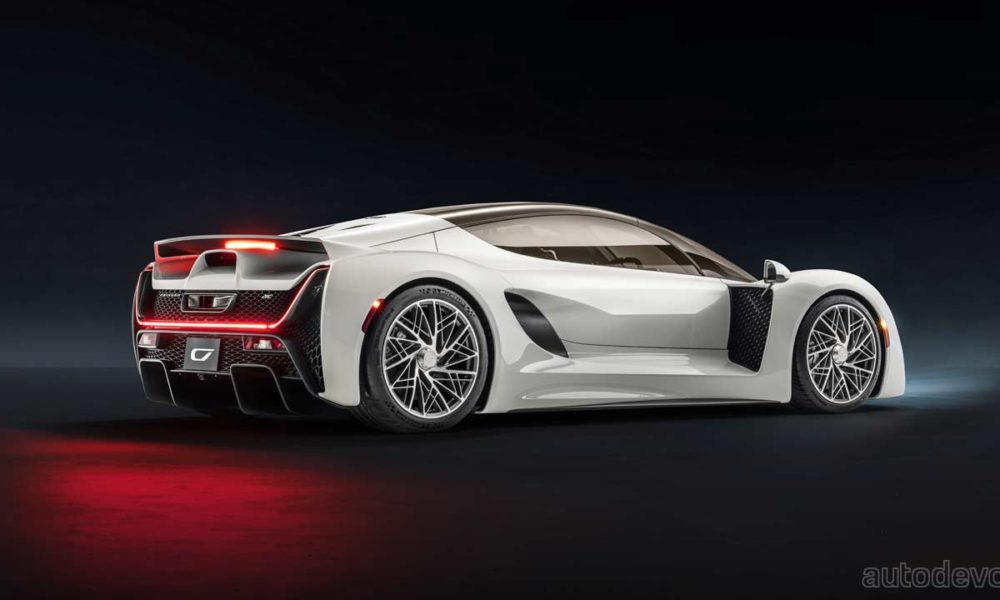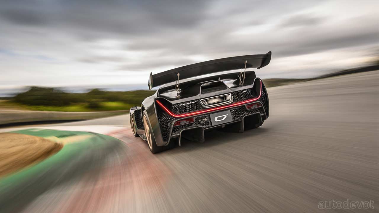 The claimed performance figures are interesting too. A 0-100 km/h (62 mph) acceleration happens in 1.9 seconds and the top speed is 432 km/h (268 mph). A 0 to 400 km/h (248 mph) to 0 is claimed to happen in 29 seconds. The track version can do a top speed of 380 km/h (236 mph). At 250 km/h (155 mph), the track version is claimed to generate downforce of 790 kg (1,742 lbs).