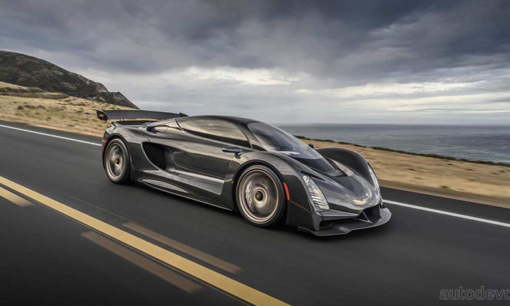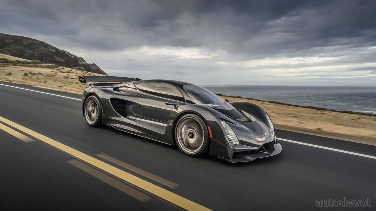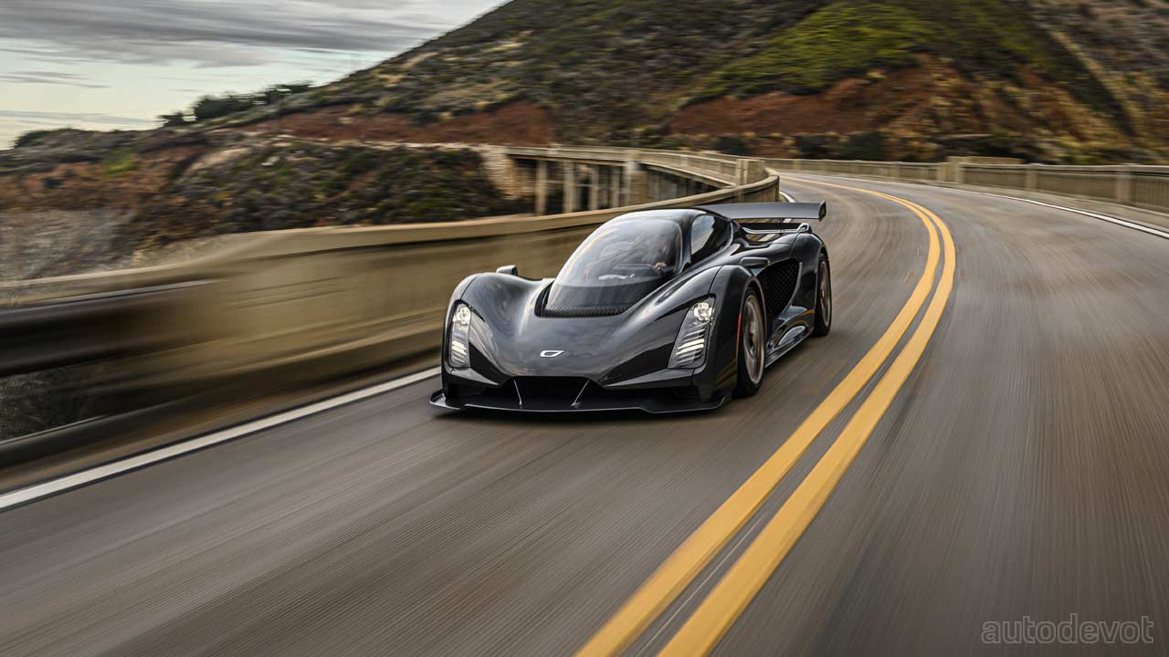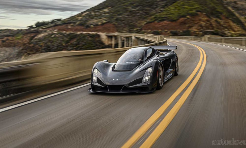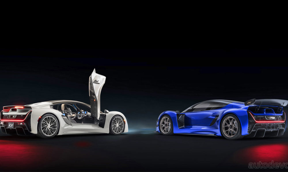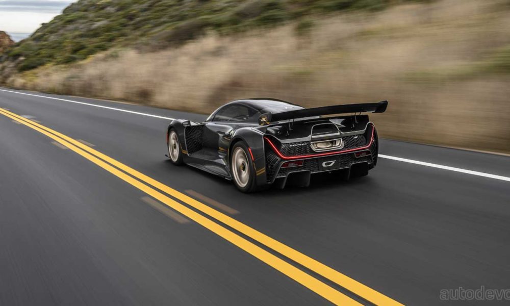 The claimed performance figures are interesting too. A 0-100 km/h (62 mph) acceleration happens in 1.9 seconds and the top speed is 432 km/h (268 mph). A 0 to 400 km/h (248 mph) to 0 is claimed to happen in 29 seconds. The track version can do a top speed of 380 km/h (236 mph). At 250 km/h (155 mph), the track version is claimed to generate downforce of 790 kg (1,742 lbs).