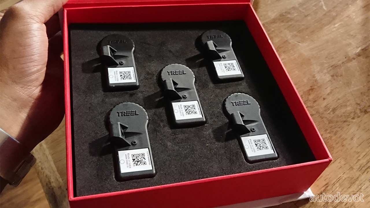 For a four-wheeler, for example, the kit comprises IoT-based TPMS sensors and valves. The sensor design is slightly different for motorcycles. The battery life is claimed to last for over 5 years, and the connectivity range is up to 200 feet. The owners will get real-time information about the tyres on their smartphone via Treel app. In addition, buyers can add a GPS tracking device called MTrac, which can track the vehicle and send information such as trip data and speed alerts.