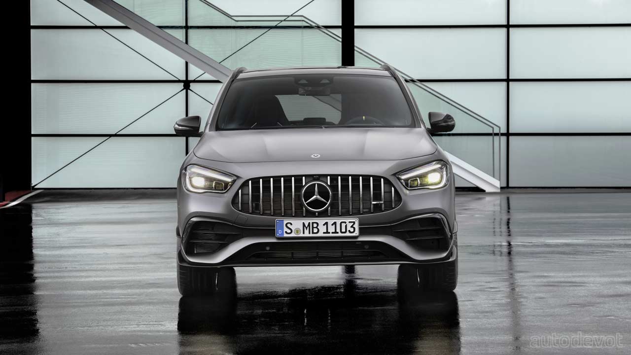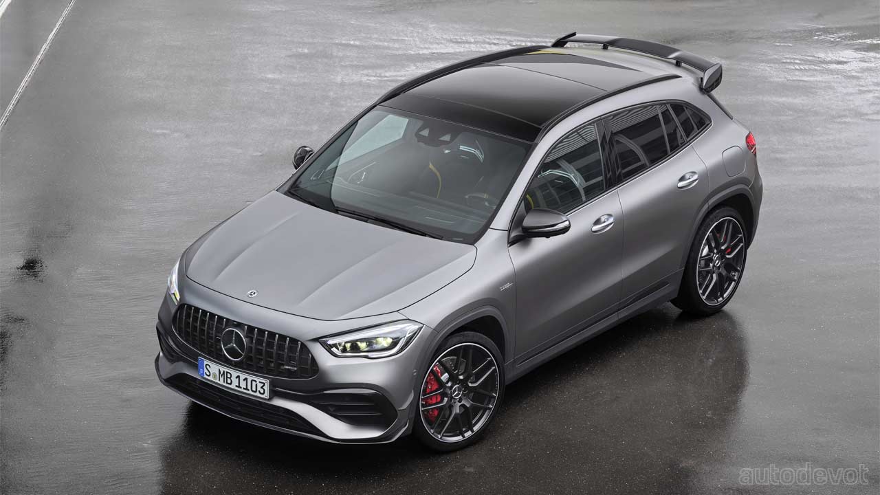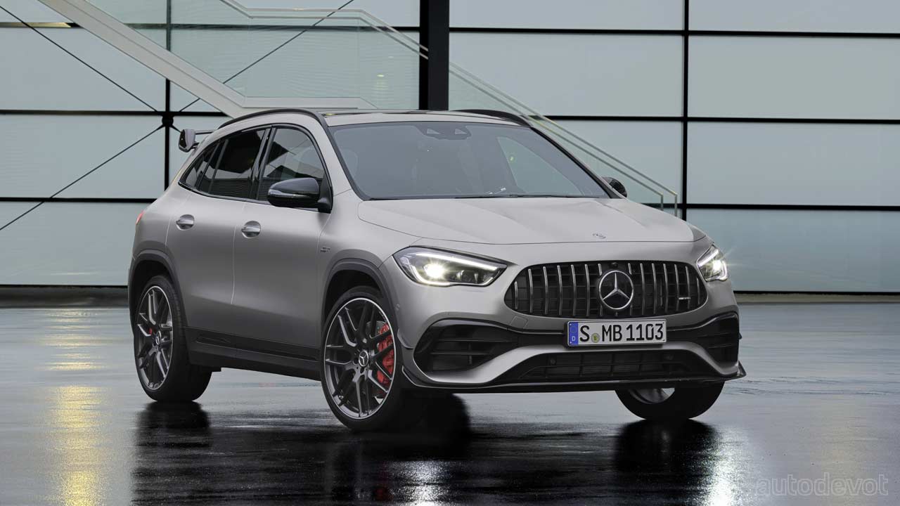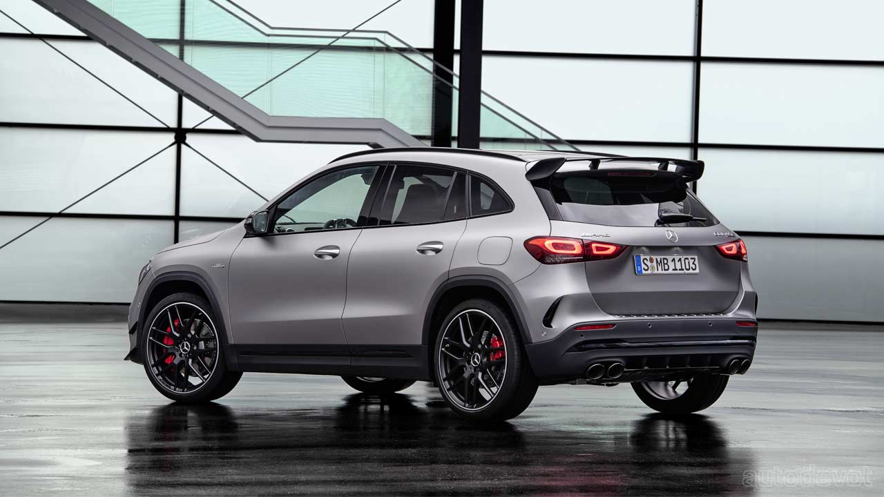 The high-performance variant of the second generation GLA has made its debut in AMG GLA 45 and AMG GLA 45 S guises. Compared to the GLA 35 model, the 45 looks a bit hot hatch-ish like with that large rear spoiler.