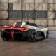 Inside, there are bucket seats that sit low in the carbon fibre tub with race-derived feet-up driving position. The steering wheel is a combination of machined aluminium and carbon fibre, trimmed with perforated leather.
