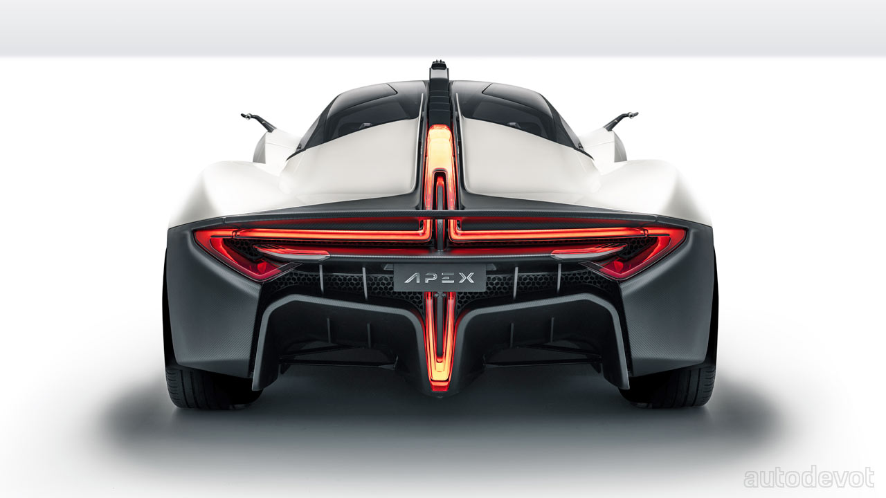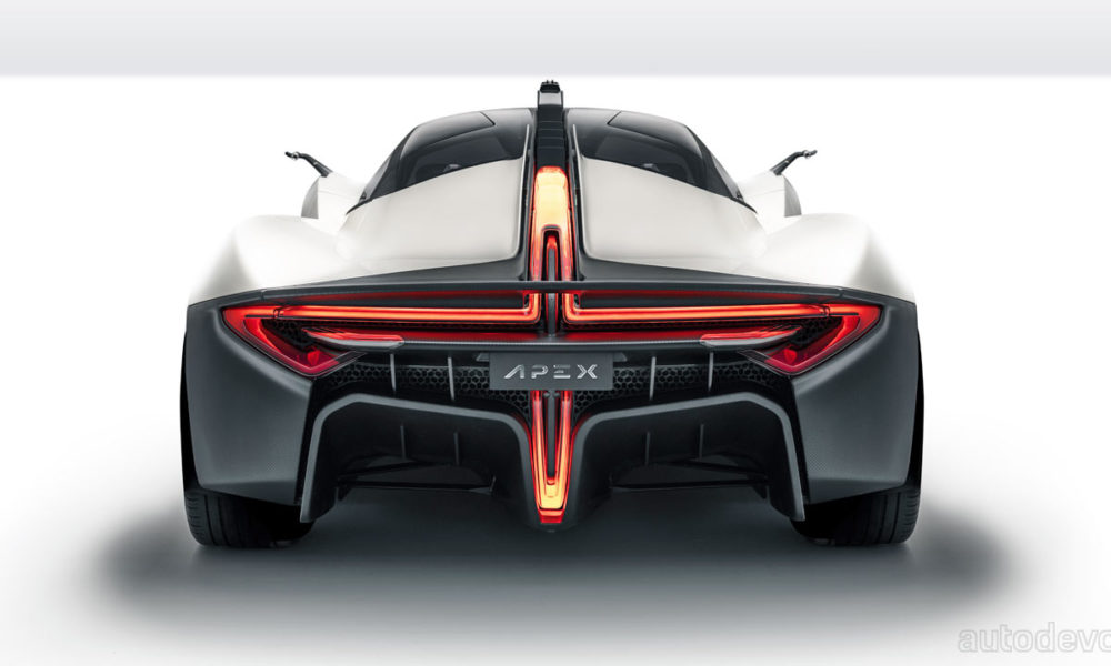 Apex says that the AP-0 is rear-wheel drive car with an output of 484 kW (658 hp) and a maximum torque of 580 Nm (428 lb-ft), drawing juice from a 90 kWh floor-mounted battery pack that weighs 550 kg (1,212 lbs). With a kerb weight of 1,200 kg (2,645 lbs), the AP-0 is claimed to achieve a 0-62 mph (0-100 km/h) acceleration in 2.3 seconds and a top speed of 190 mph (306 km/h).