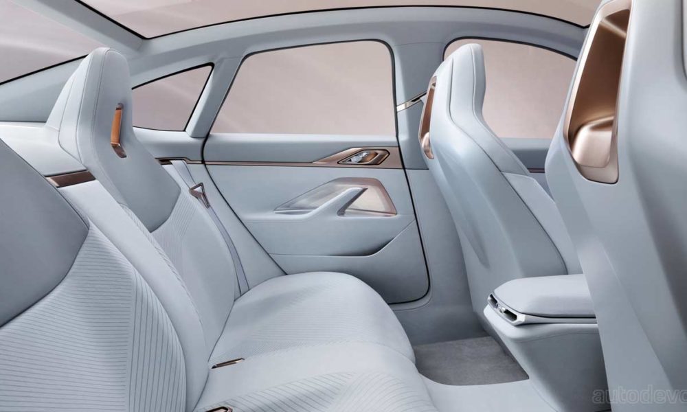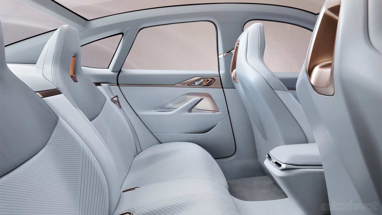 The Concept i4 is powered by BMW’s 5th generation eDrive technology. The electric motor is claimed to produce a maximum output of up to 390 kW (530 hp), drawing juice from an 80 kWh battery pack that weighs 550 kg.