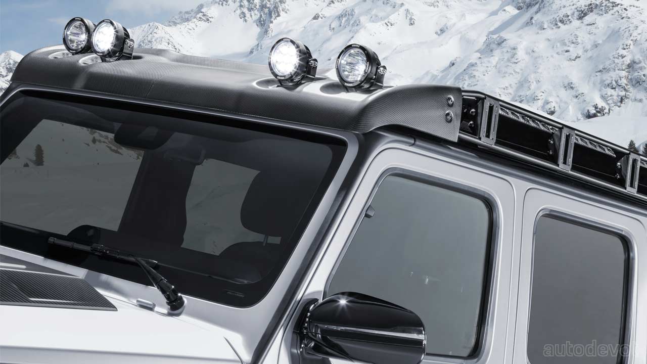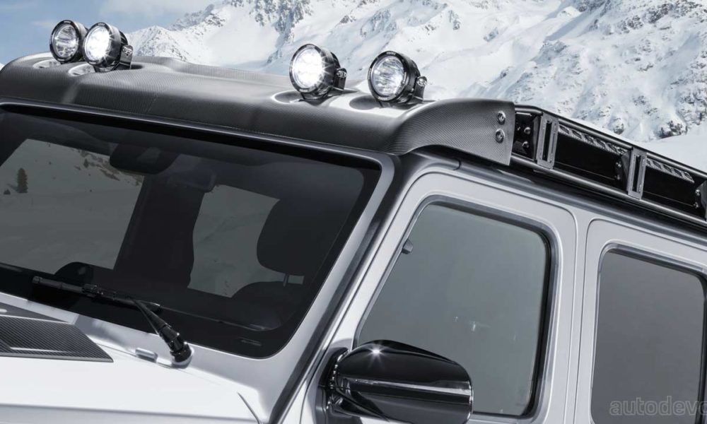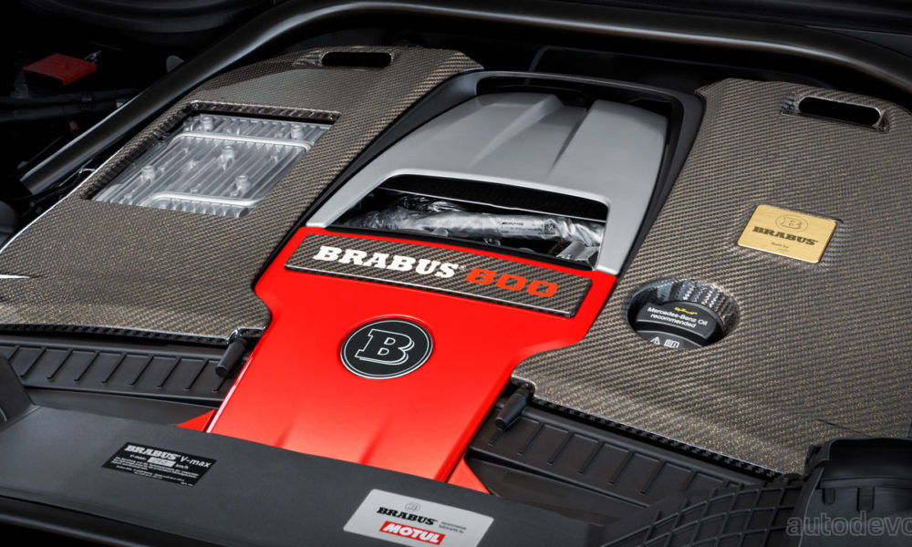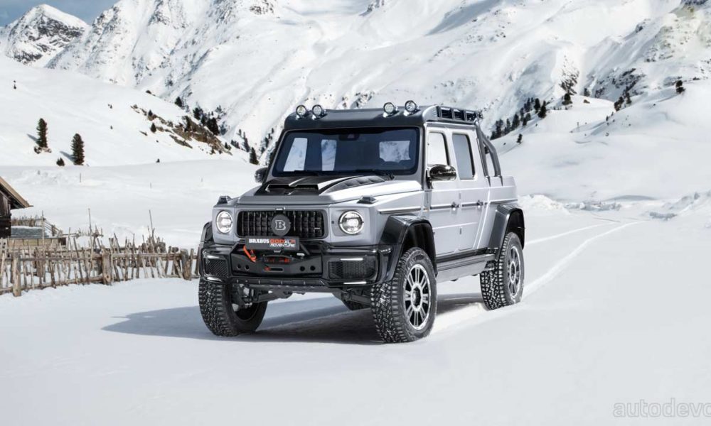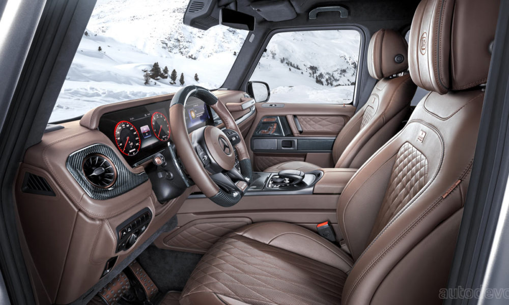 The overall length is 5.31 meters, which is 68.9 cm more than a stock G 63 without the spare wheel at the rear. The truck also sports Brabus’ Widestar widebody design with components made from composite materials.