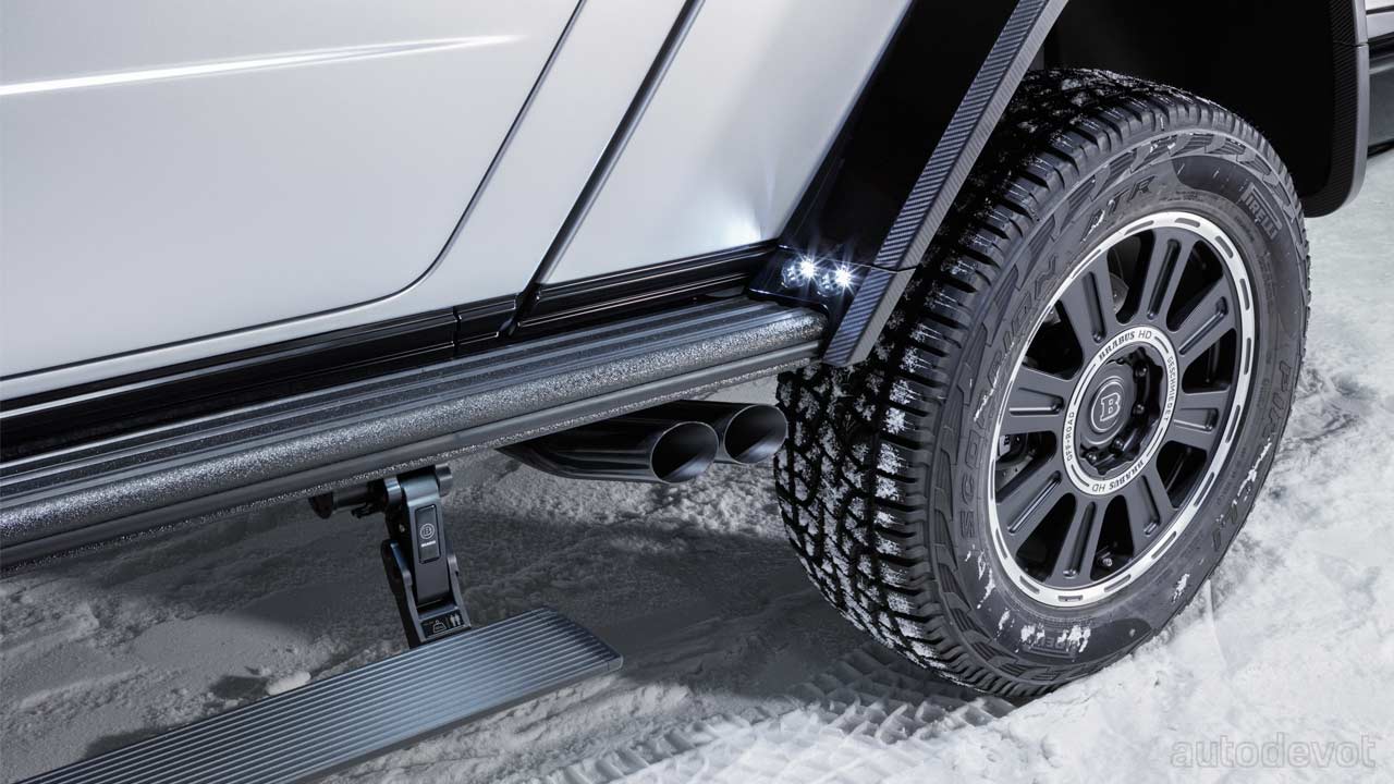 The truck rides on a new 22-inch Brabus Monoblock HD wheels shod with Pirelli Scorpion ATR all-terrain tires.