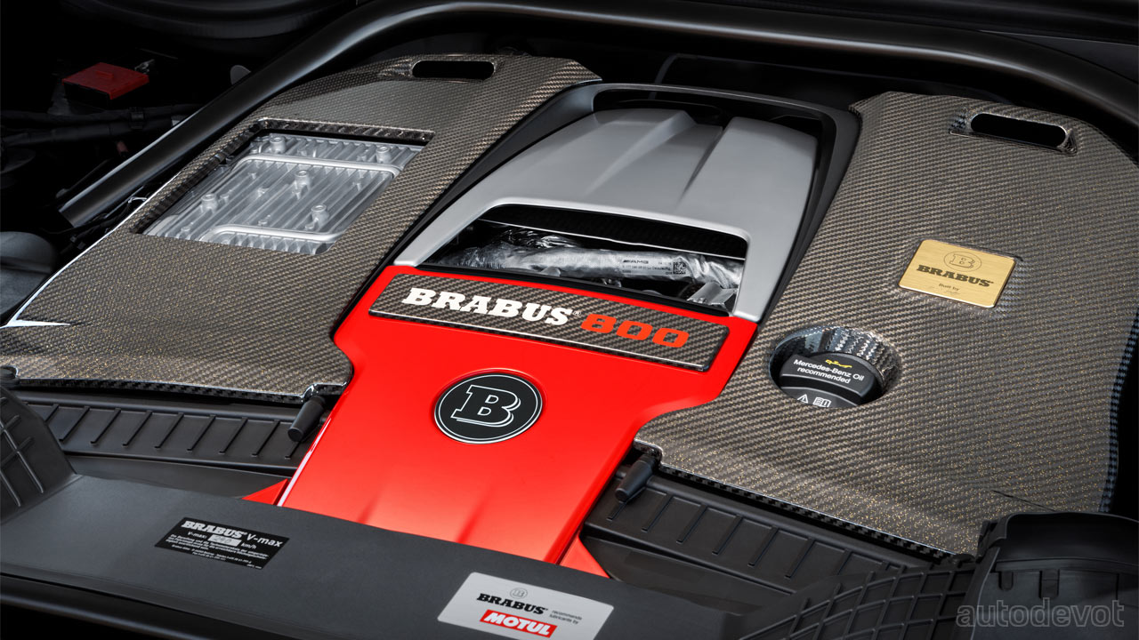 The 4.0-litre V8 twin-turbo motor puts out 588 kW (800 hp) at 6,600 rpm and a peak torque of 1,000 Nm (737 lb-ft) at 3,600 rpm, thanks to the larger turbos with new mapping for injection, boost pressure control and ignition.