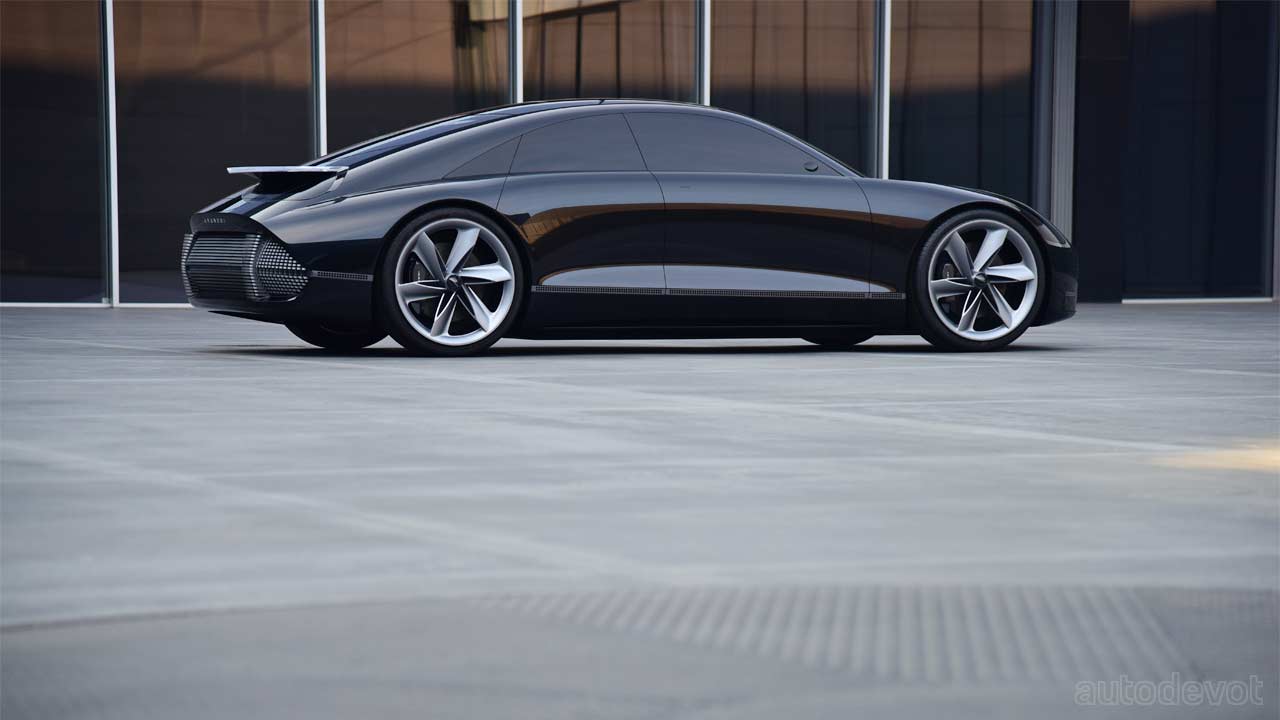 According to Hyundai, the “designers have achieved the Ultimate Automotive Form, thanks to a new EV architecture defined by pristine surfaces and pure volume in combination with aesthetic harmony and functionality”.