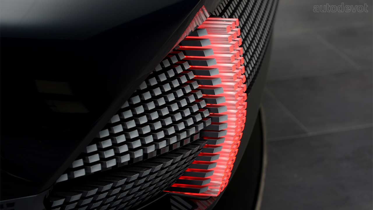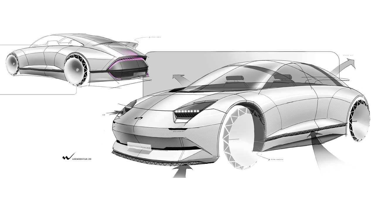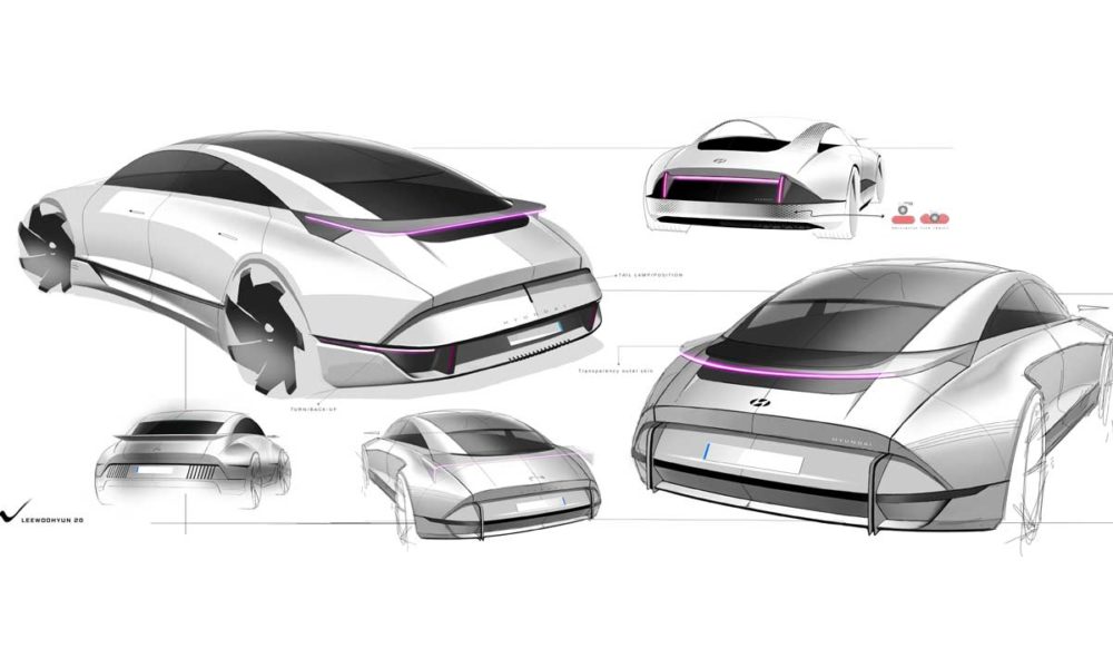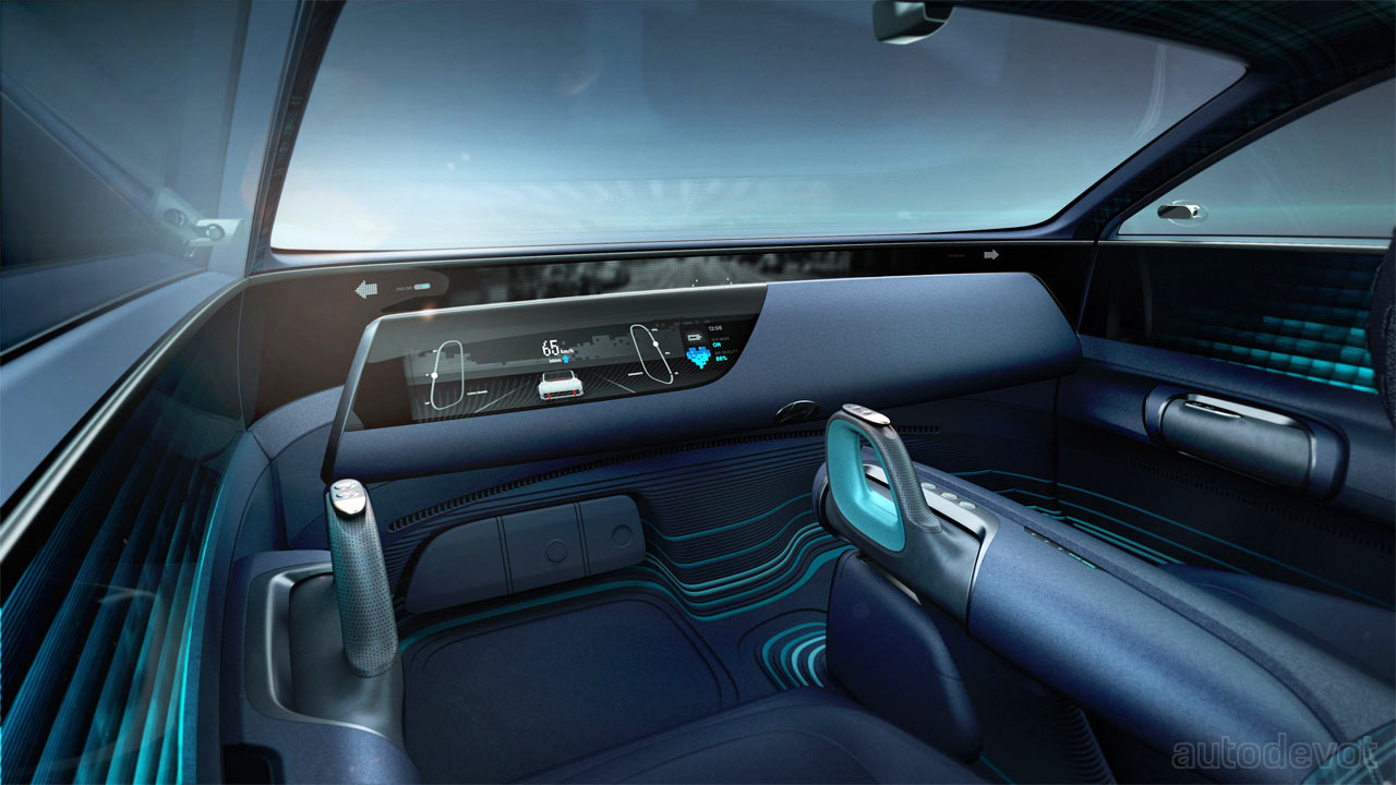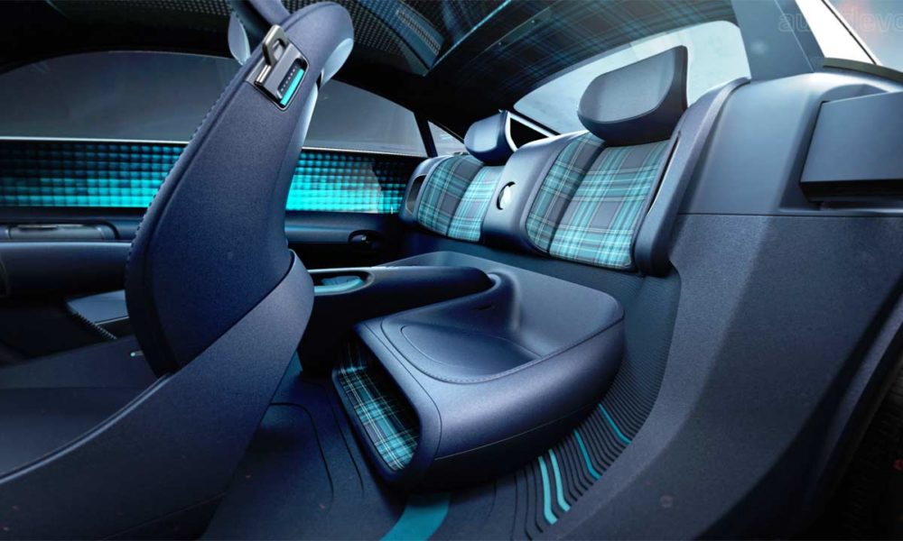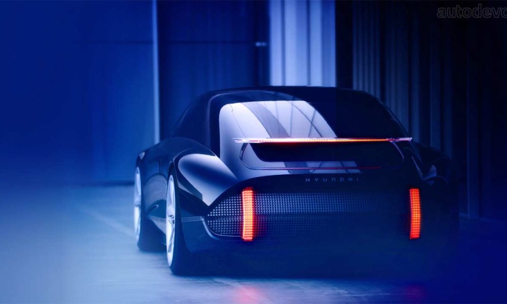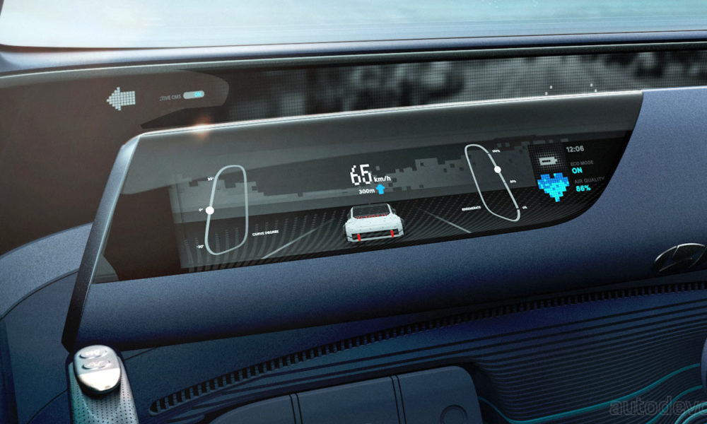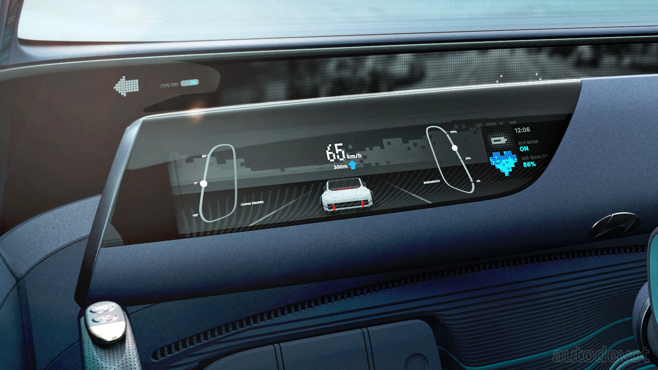 The pixel lamp lights, which debuted on the ‘45’, take a step forward. This lighting technology is integrated into the headlamps, taillamps and the spoiler, represent the energy contained in the vehicle’s battery cells. Hyundai said that these Pixelated lamps will become a signature design element in future models.
