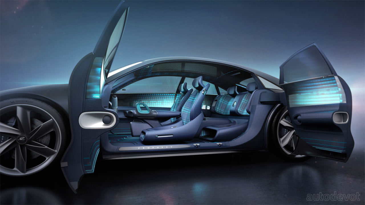 As we can see, the Prophecy doesn’t have a steering wheel as it also packs autonomous driving technology. What it does have, however, are two joysticks that can pivot left and right, one in the centre console and another on the door trim. The joysticks have integrated buttons to control a wide variety of functions. However, it remains to be seen how practical this application would be in a real-world scenario.