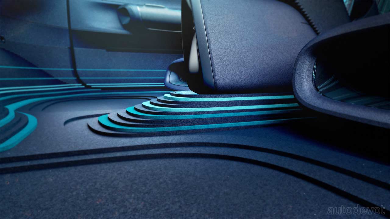 Unlike the exterior, the Prophecy’s interior is pretty unique, it doesn’t really remind us of anything. The interior’s wool-based felt carpet is inspired by the flow of water in nature. The colors and materials used are apparently to make the passengers feel relaxed, aided by low-intensity ambient lighting.