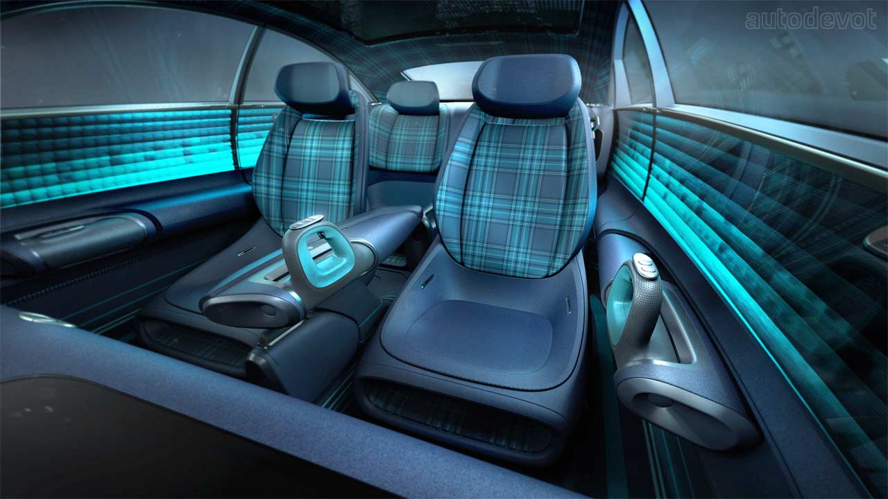 In ‘Relax’ mode, the dashboard swivels and all that the passengers see is the horizontal pillar-to-pillar display, where they can enjoy content in a comfortably reclined seat position.