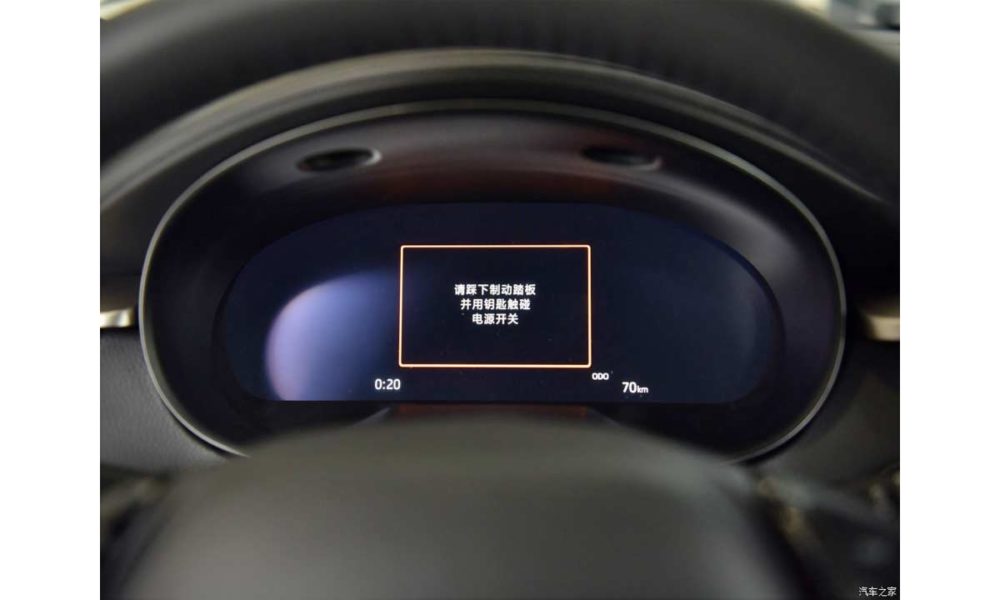 Inside, the Power button has a subtle Blue tint to it. The example here features White upholstery that contrasts against the all-Black theme.